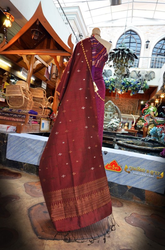 ผ้าสไบไหมขิดไหมคำ สีธรรมชาติ