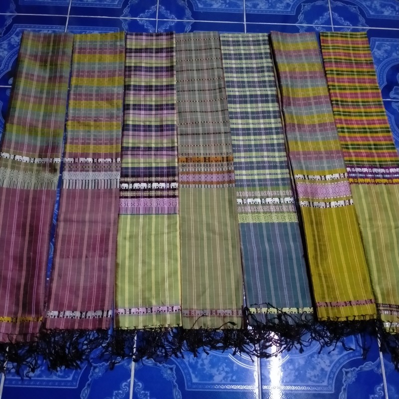 เป็นผ้าขาวม้าสีธรรมชาติทอยกขิดย้อจากครั้งประโหดเขแล้วหมักโคลน