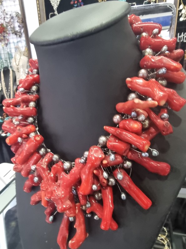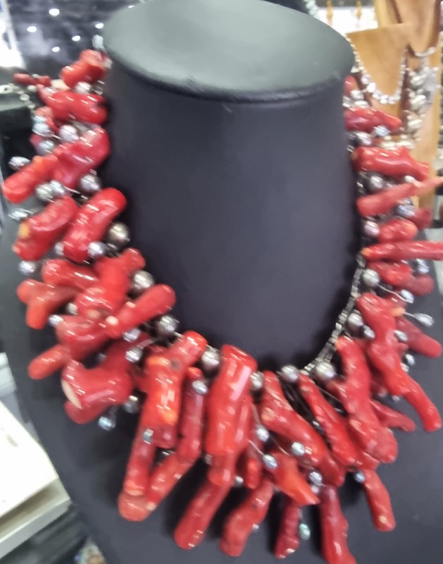 สร้อยปะการัง มำจากปะการังและริสตัล กับมุกดำ