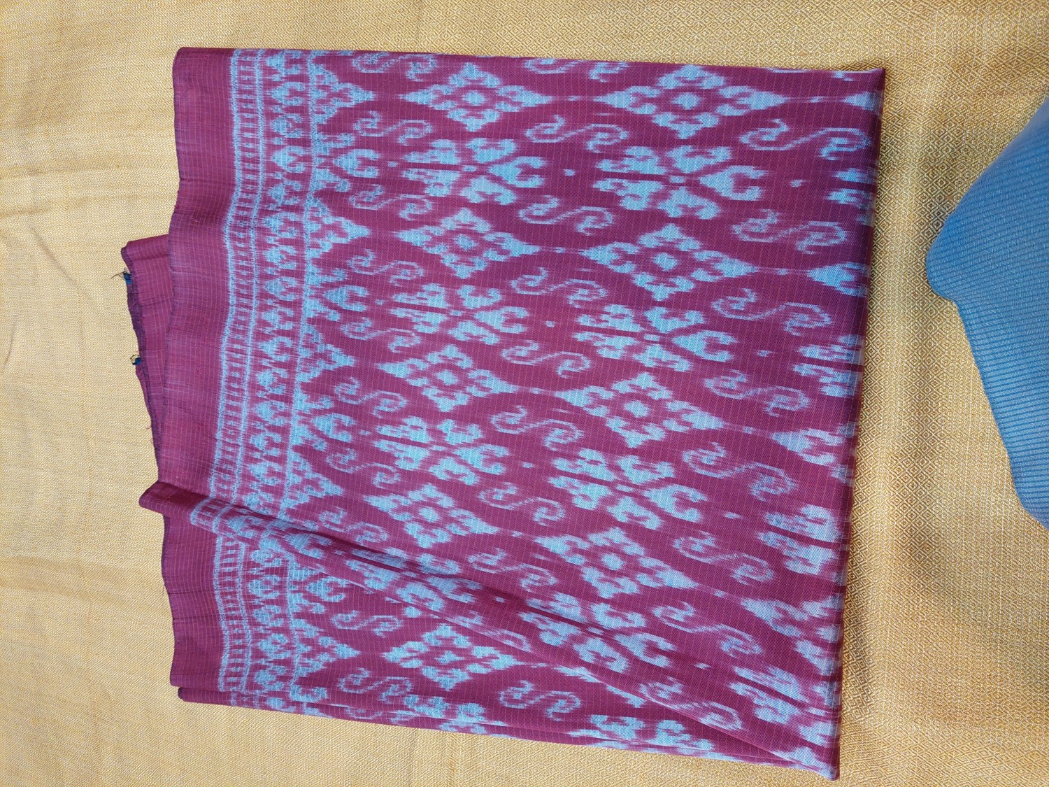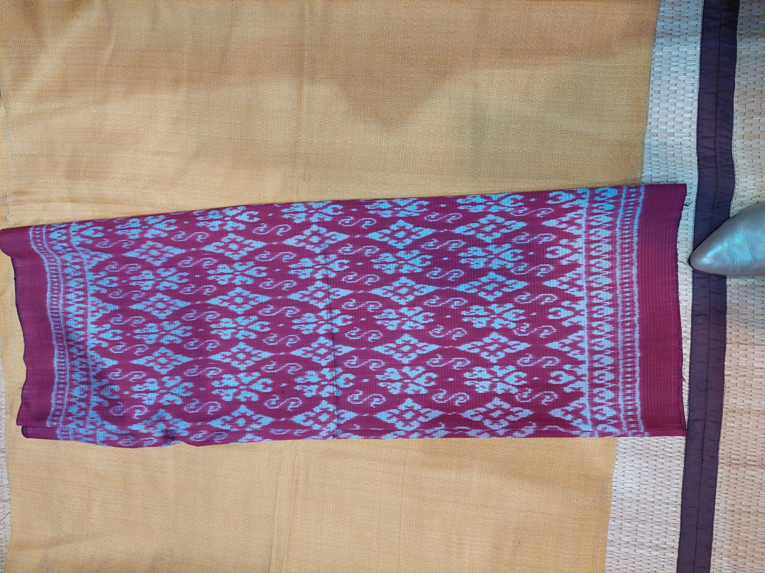 ผ้าไหมมัดหมี่สีธรรมชาดย้อมครั่งไหมแท้ทอมือ 3ตะกอ