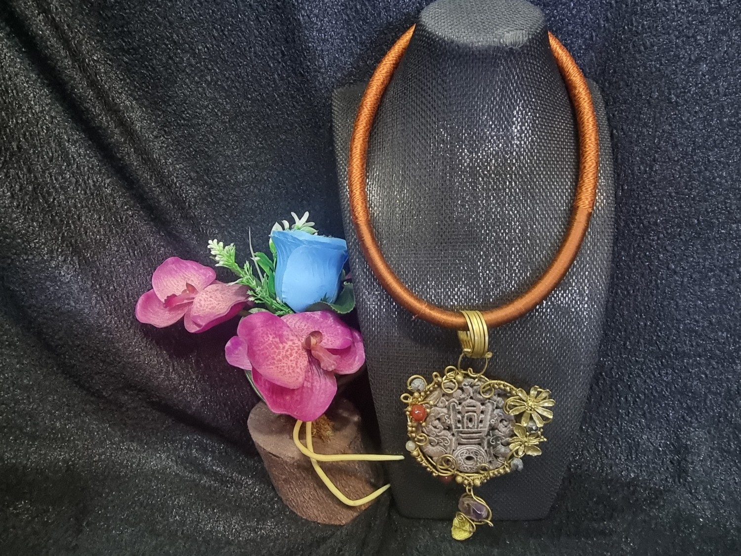 สร้อยไหมจี้หยก ทำจากเส้นไหมตกแต่งด้วยเงิน ให้มีความทันสมัย