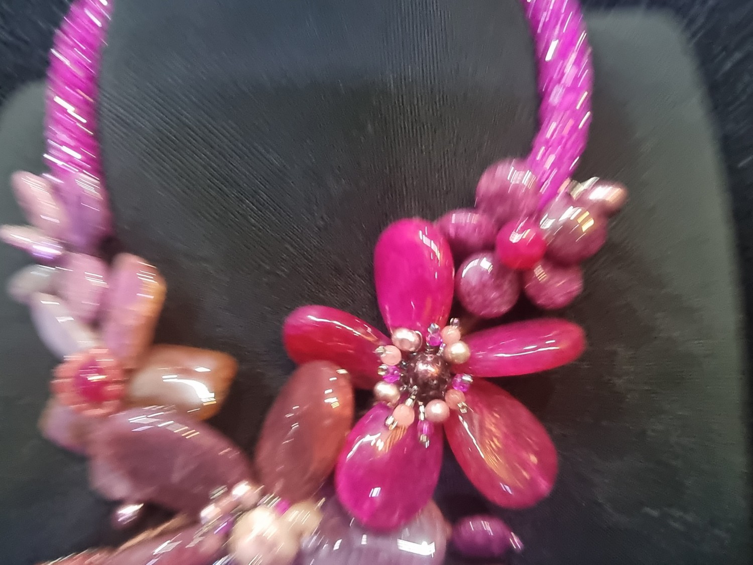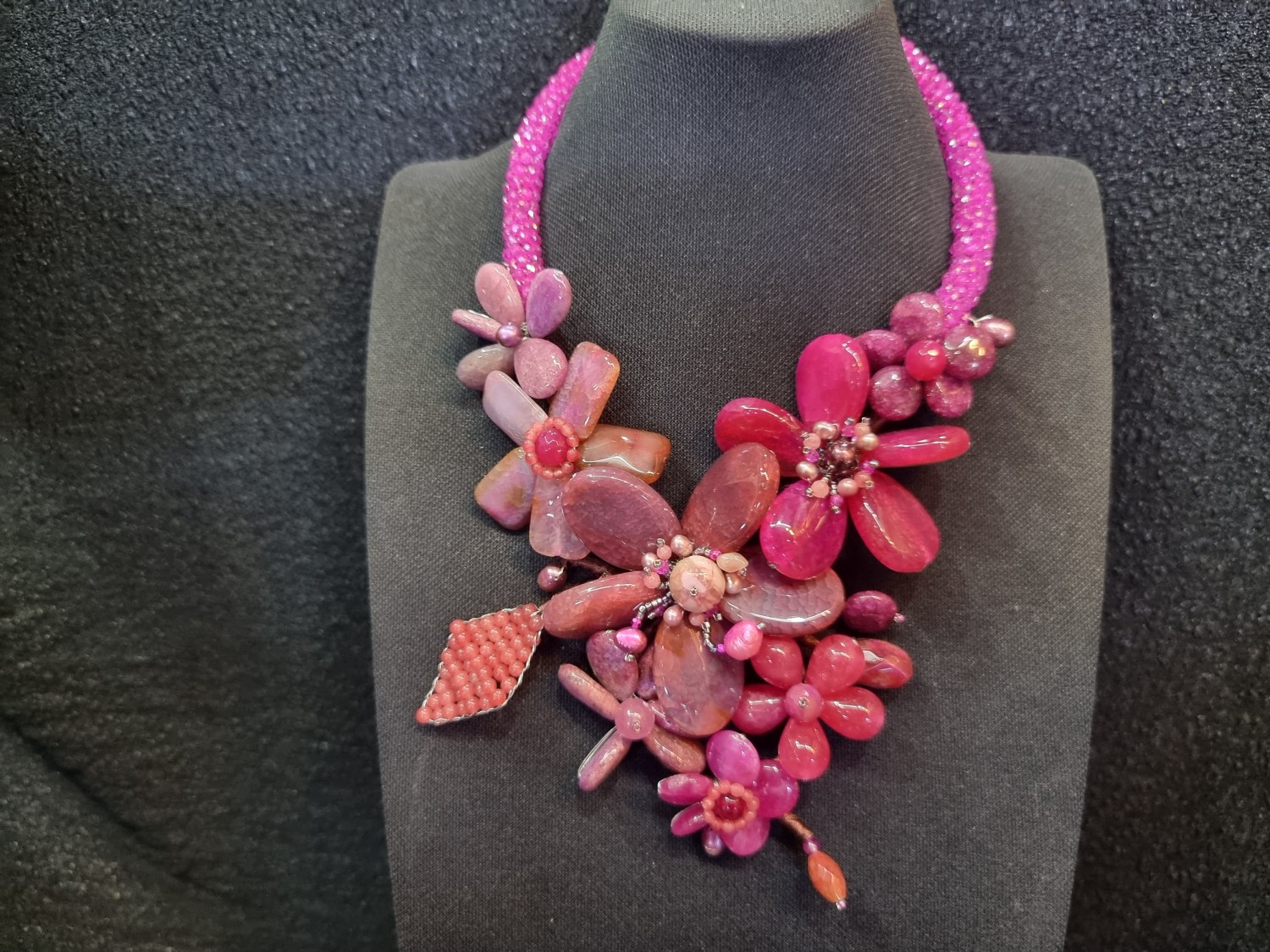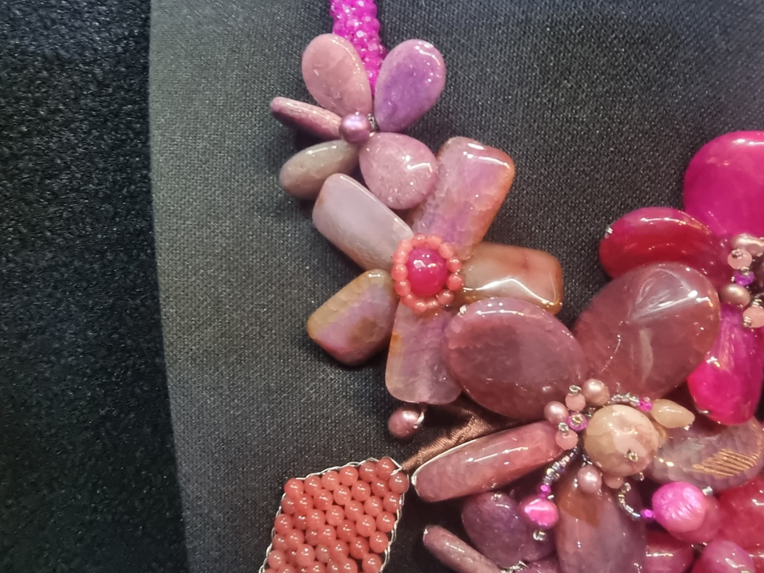 สร้อยหินสีอาเกดดอกไม้ชมพู ทำจากหินอาเกด นอกจากใส่เพื่อความสวยงาม ยังช่วยส่งเสริมความเป็นสิริมงคล