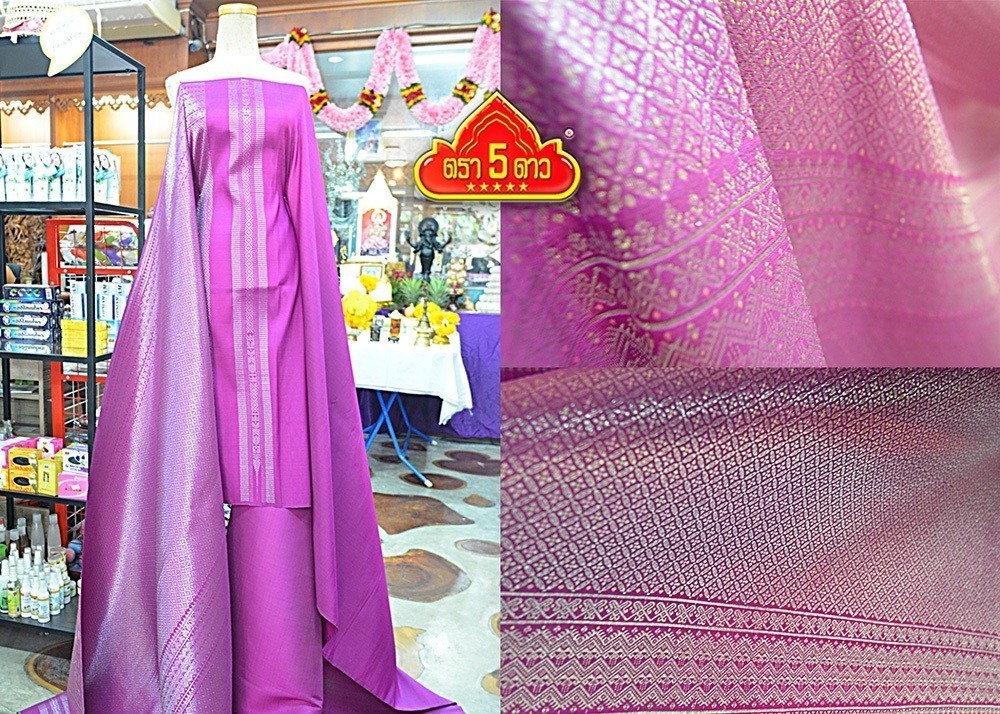 ผ้ายกดอกไหมสุรินทร์ ดิ้นเงิน (พร้อมผ้าพื้น)