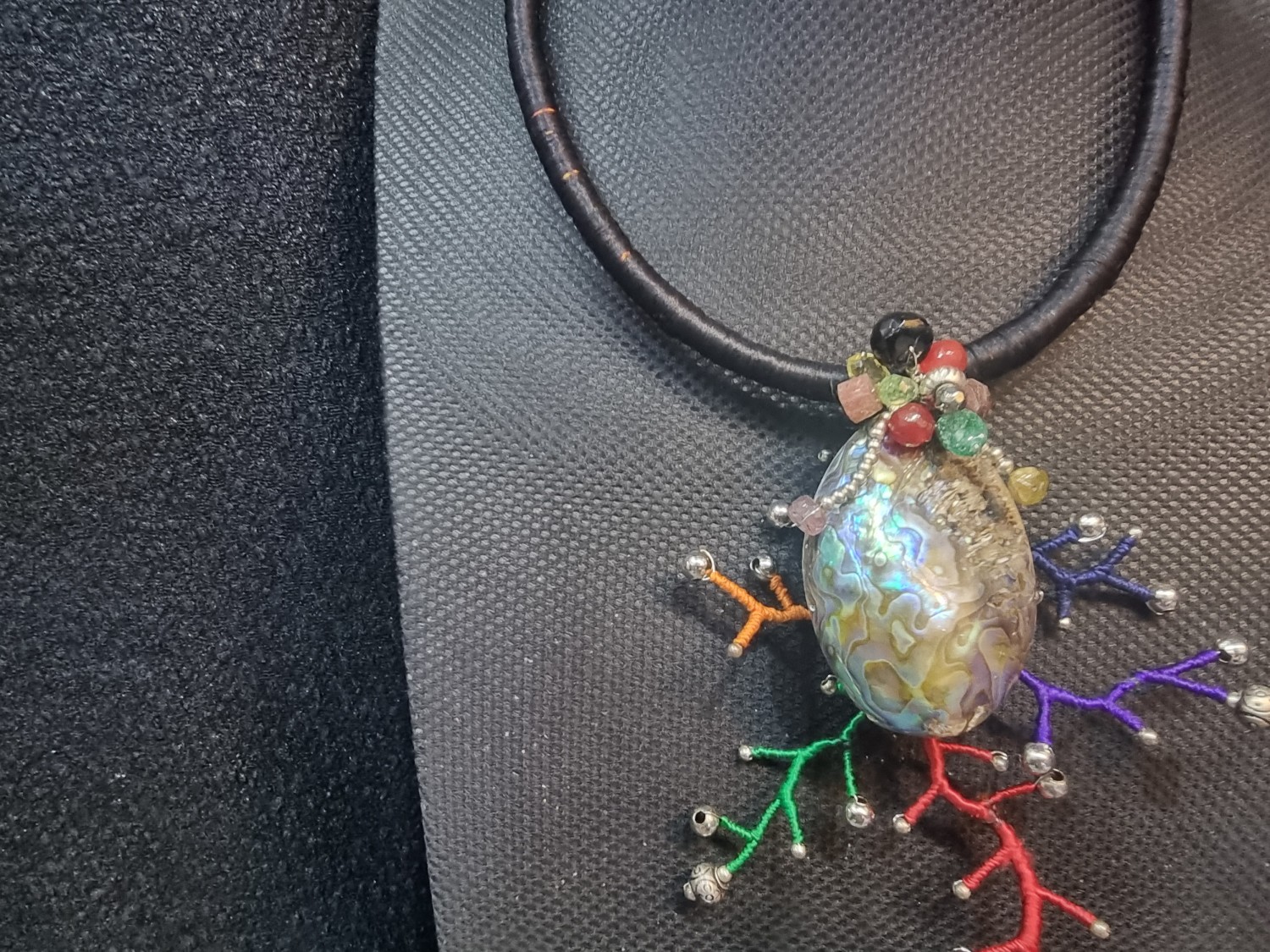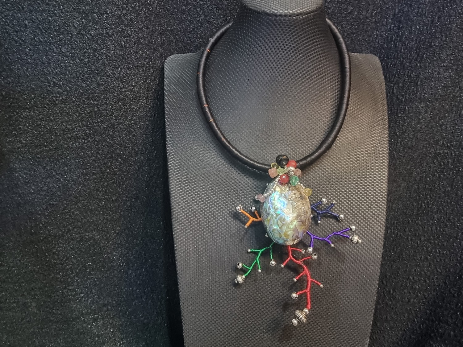 สร้อยไหมจี้หอยทำจากเส้นไหมตกแต่งด้วยเม็ดอลูมิเนียม ให้มีความทันสมัย