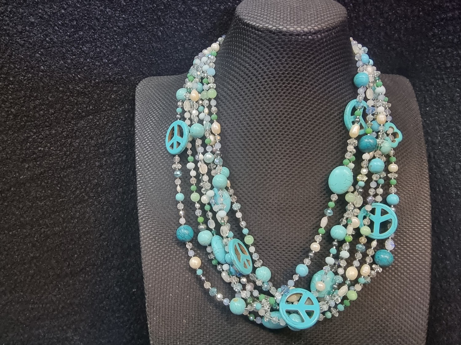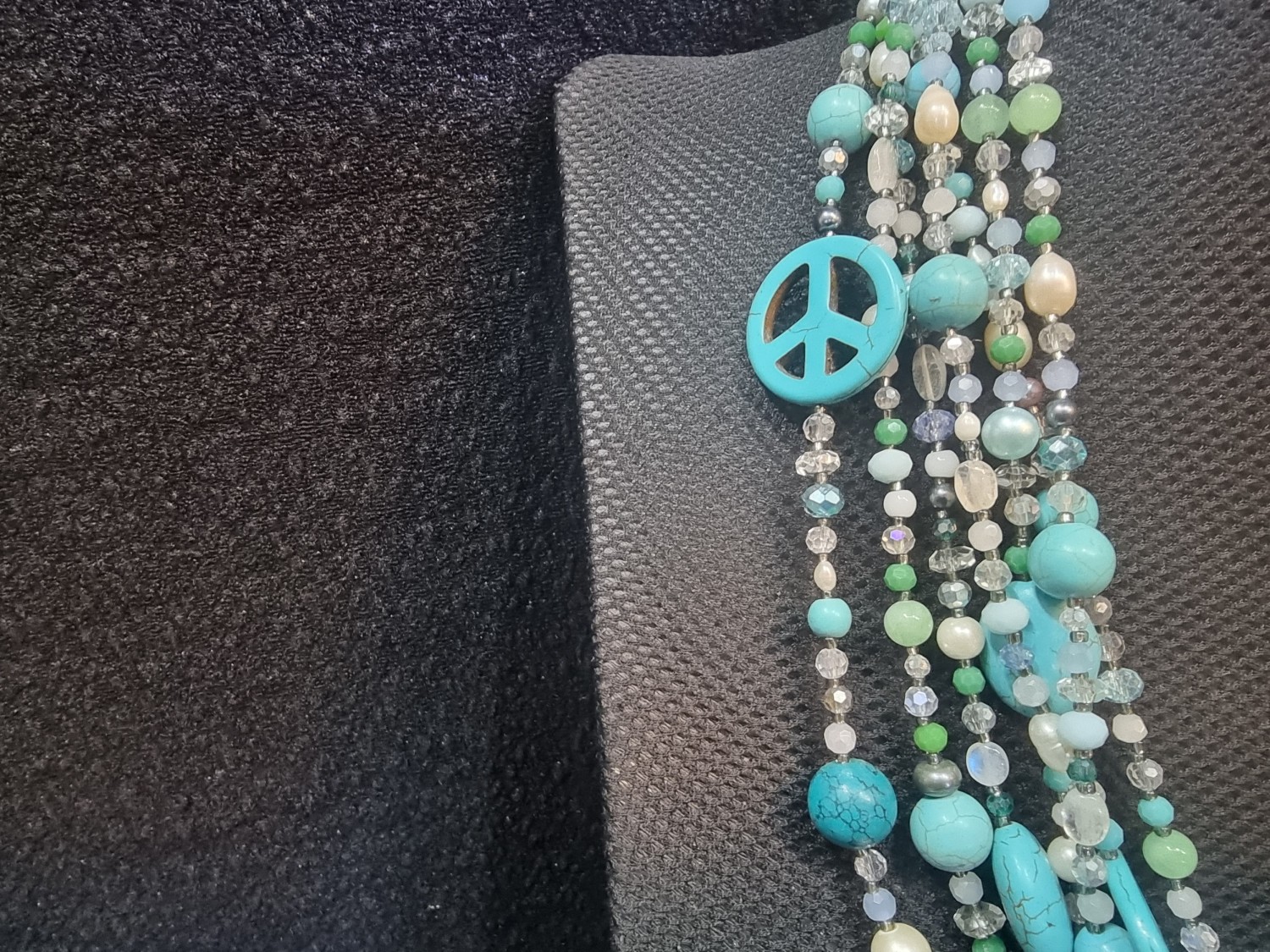 สร้อยคริสตัลคละสีโทนฟ้า ทำจากคริสตัลคละสี ออกแบย ให้มีความทันสมัย
