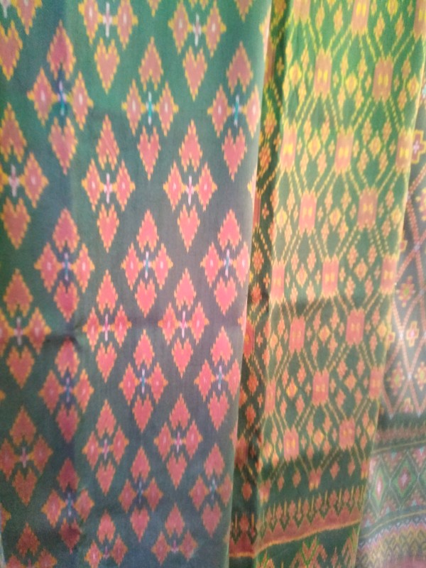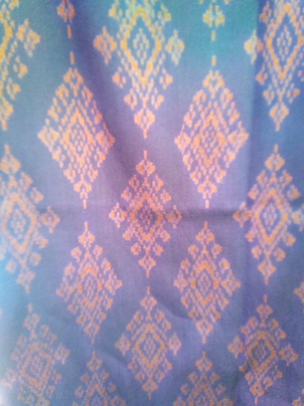 ผ้าไหมมัดหมี่หมักโคลนเป็นผ้าผืนใหม่แต่เราต้องนำมาต้มใหม่แล้วหมักโคลนอาบน้ำยาทำนิ่มจากสีที่เข้มๆกลับมาทำให้สีซอพลงเป็นสีคลาสสิกขนาดความกว้างของผ้า ยาว 1*2 ม.