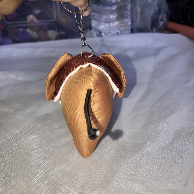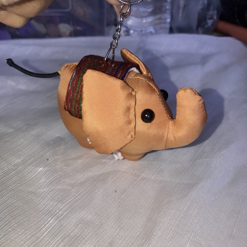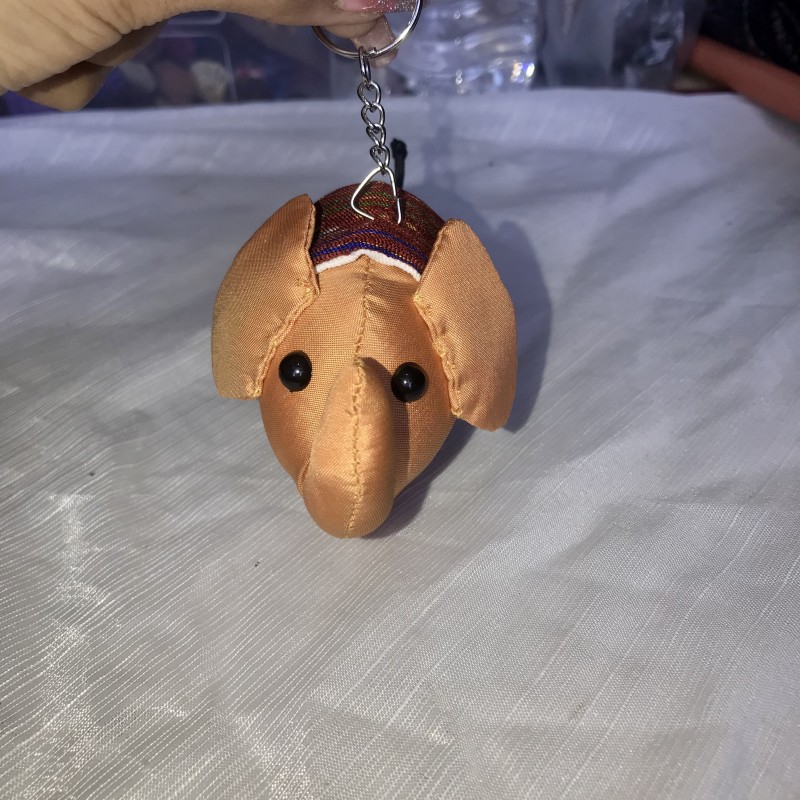 พวงกุญแจช้าง ผลิตจากผ้าไหมเย็บมือ กว้าง 10 เซนติเมตร สูง 8 เซนติเมตร