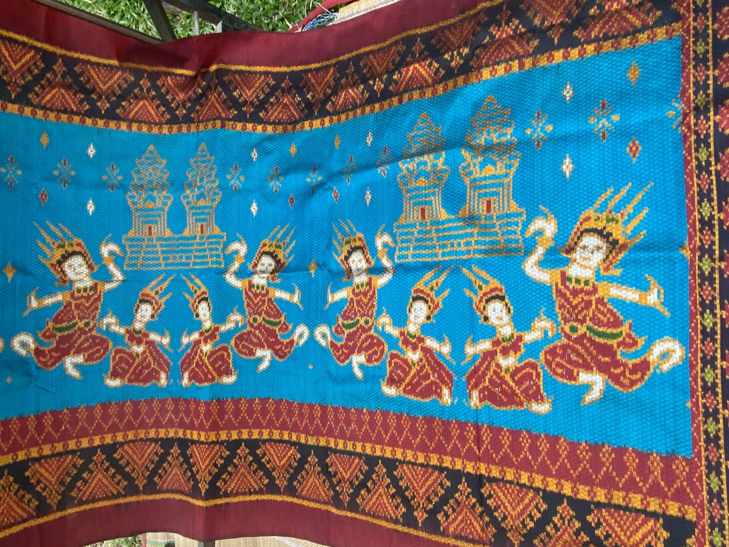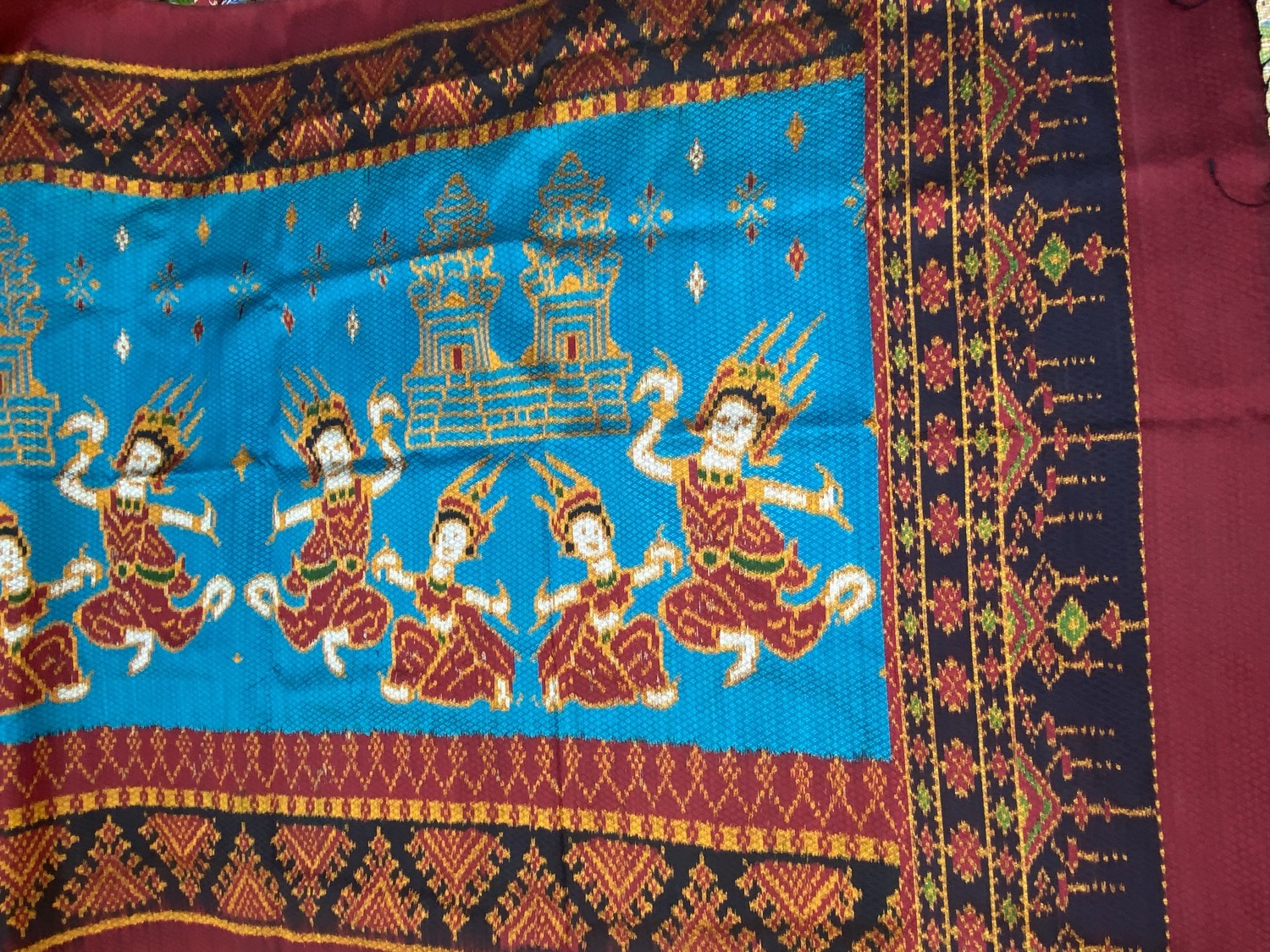 ผ้าไหมแท้ยกดอกพริกไทยลายนางรำถวายปราสาท