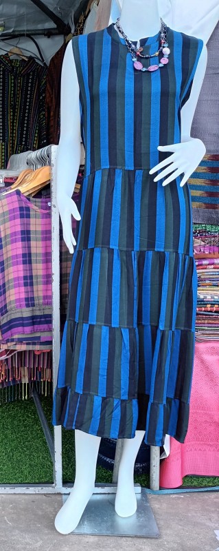 ชุดเดรสผ้าฝ้ายหมักโคลน ความยาว 1.2 เมตร รอบอก 46 นิ้ว เอวฟรีไซส์