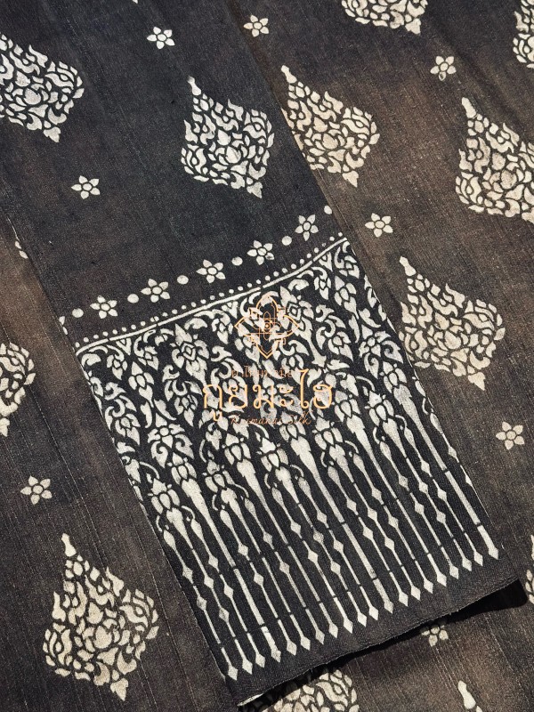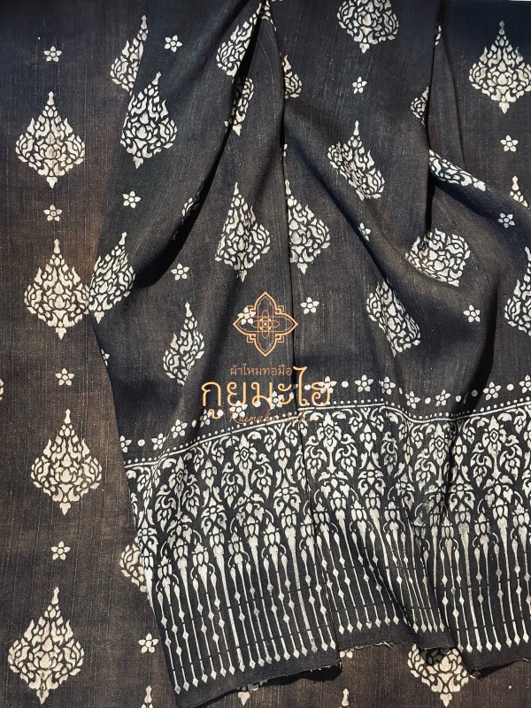 ผ้าไหมทอมือกั้นลายคมชัด งานคราฟท์ 100% ฟิกซ์สีแล้ว ผ้าทิ้งตัวดีน่าสวมใส่ เทคนิคกั้นลายแบบโบราณ ต่อหัวและเย็บพร้อมนุ่งแล้ว