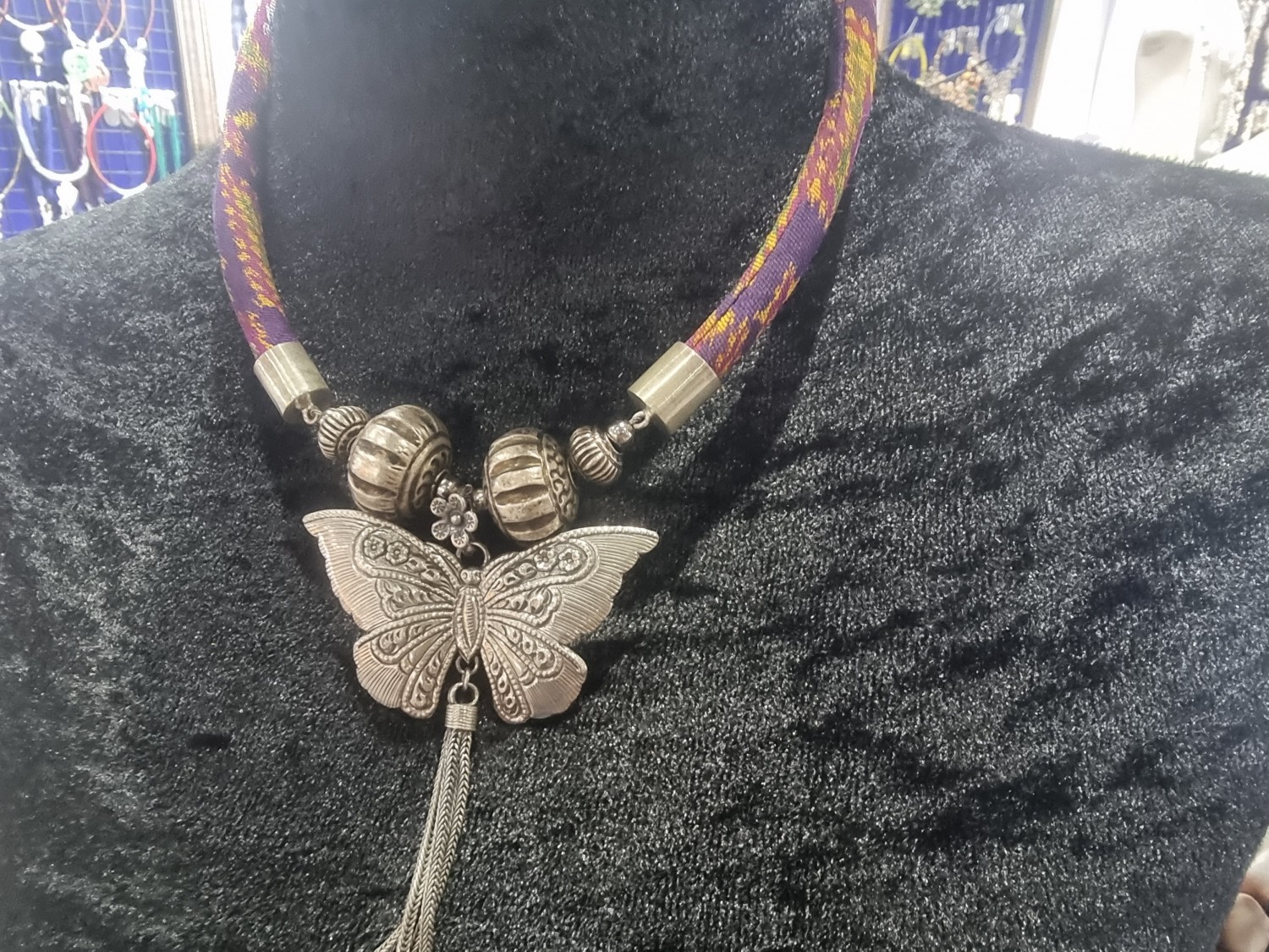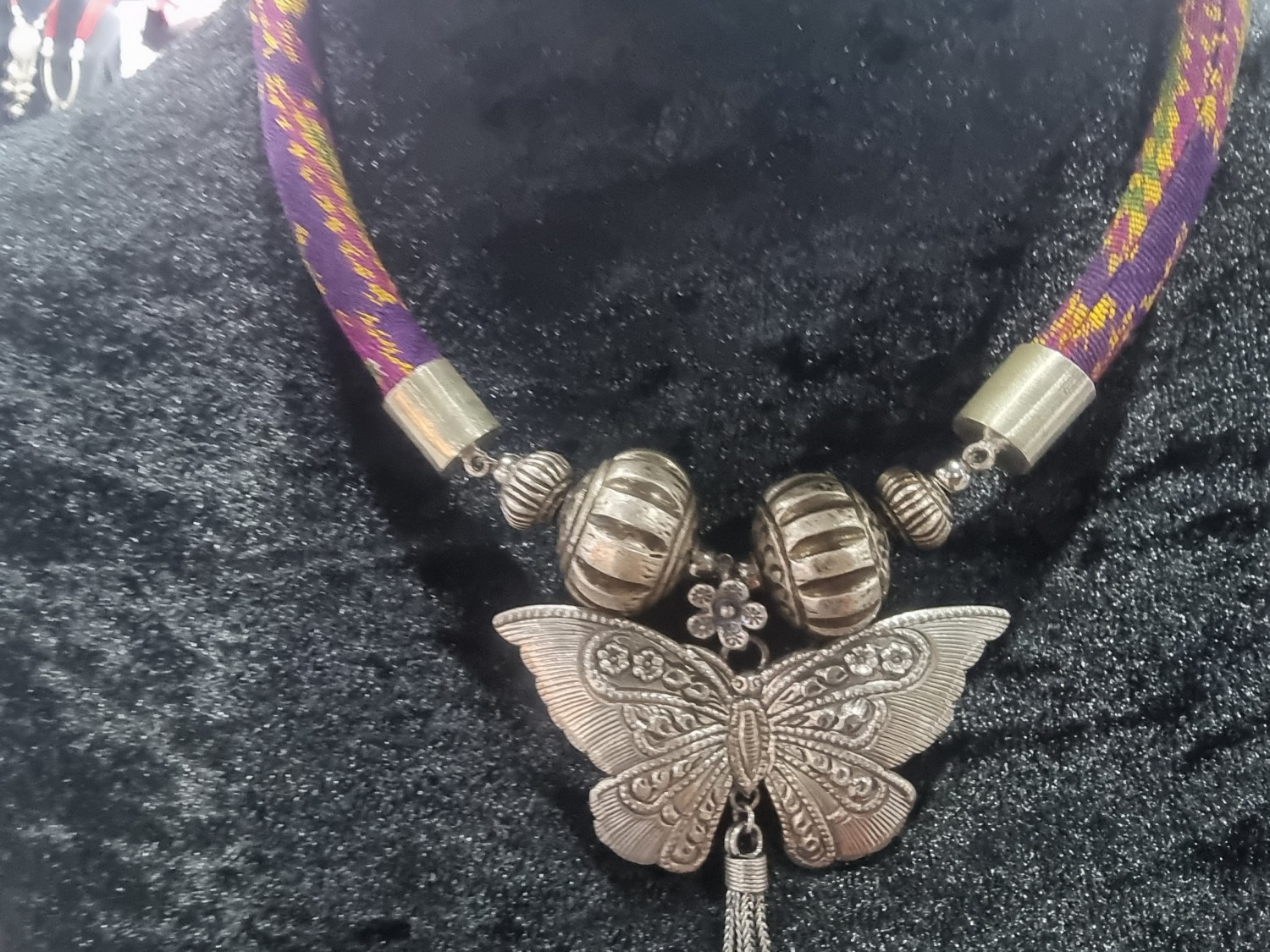 สร้อยไหมจี้ผีเสื้อ ตัวเรือนทำจากไหม ตกแต่งด้วยจี้เงิน