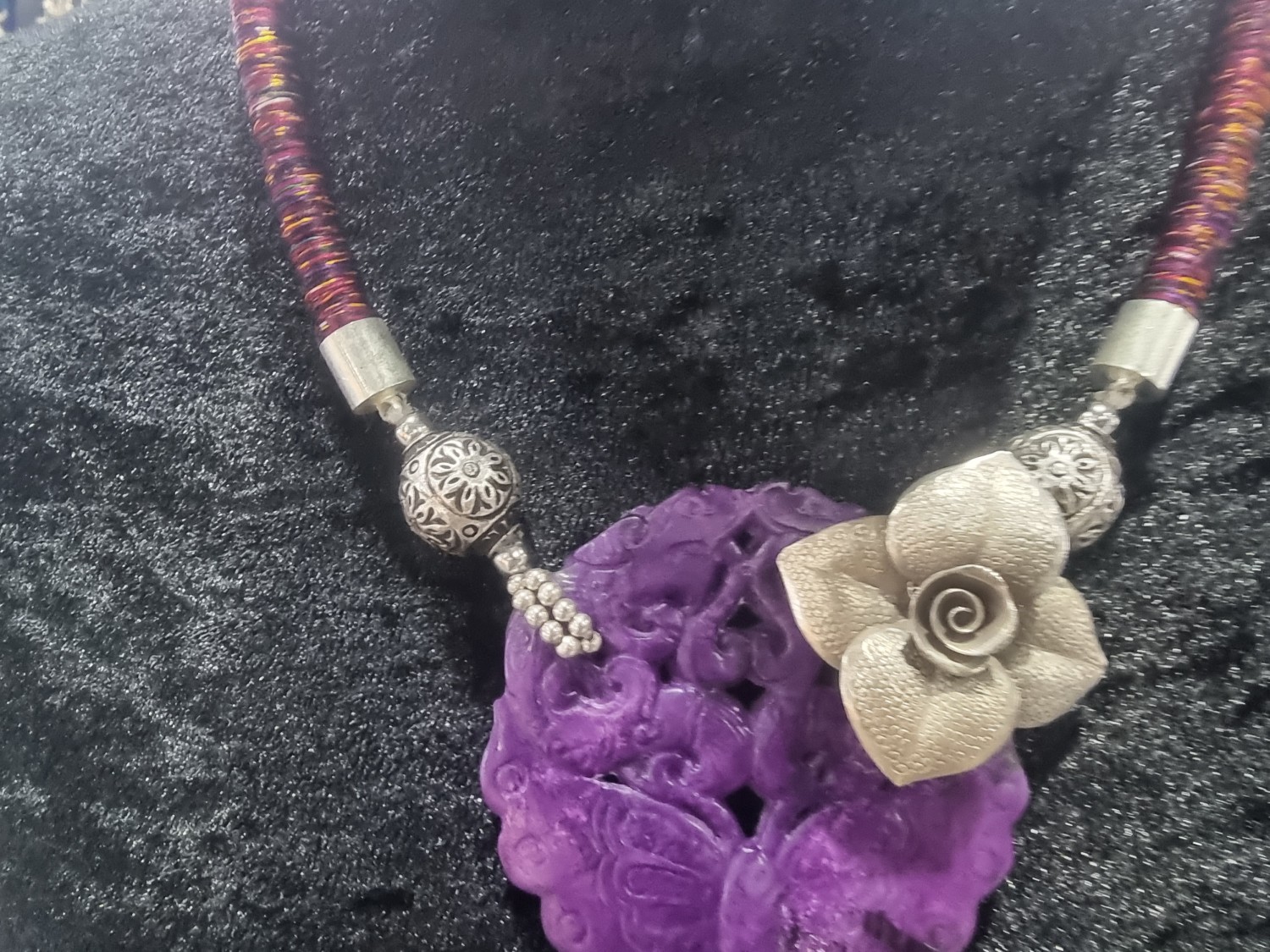 สร้อยไหมหยก ตัวเรือนทำจากไหม ตกแต่งด้วยจี้เงิน