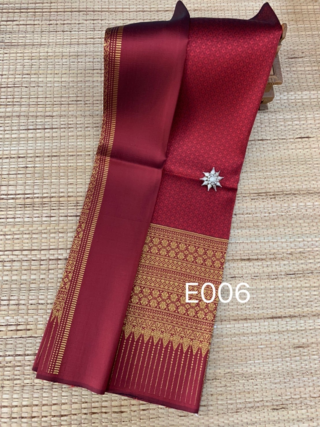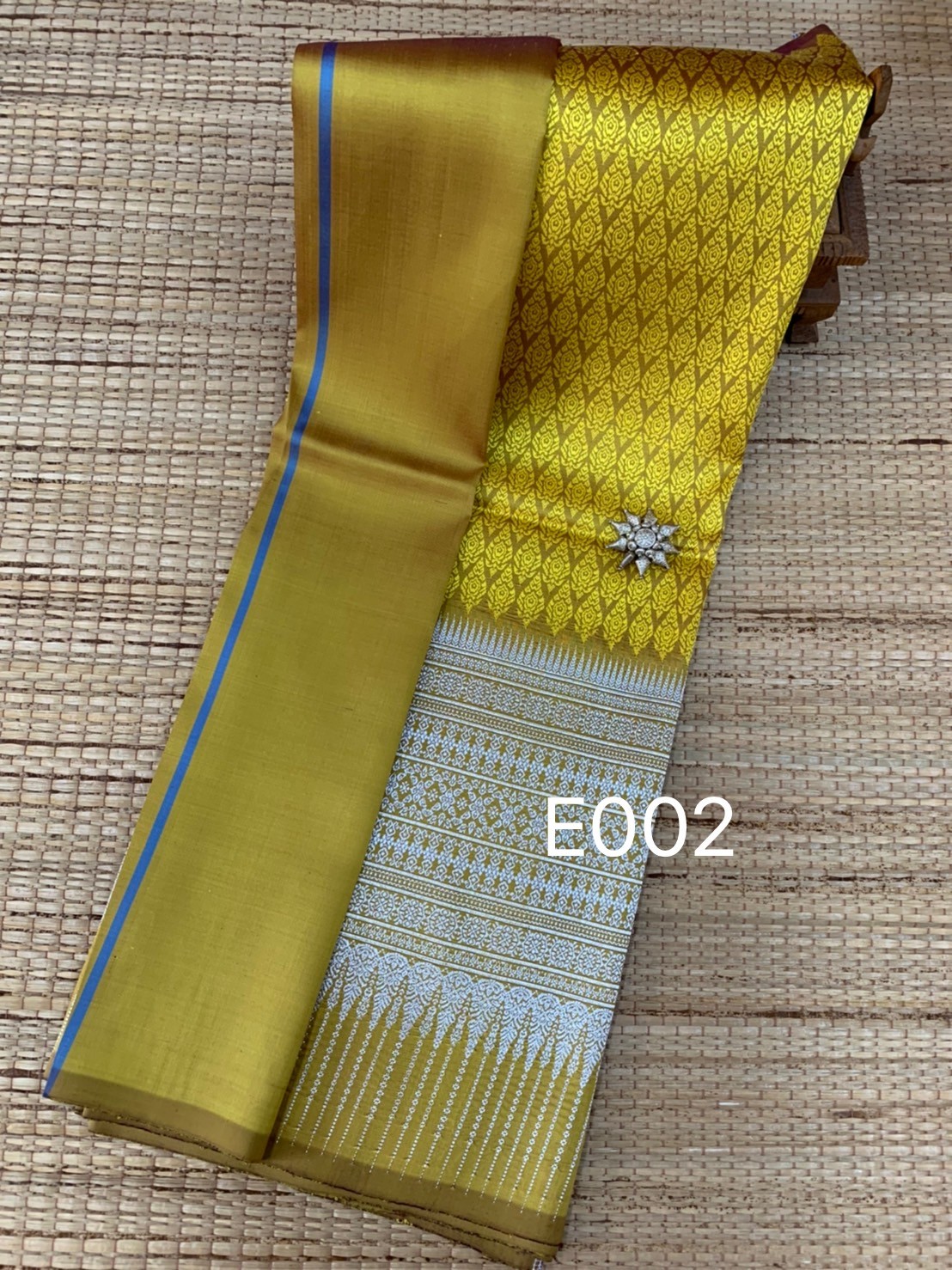 ผ้าไหมยกดอกสุรินทร์ ไหมแท้ 100% ทอยก 28 ตะกอ เกาะเชิงดิ้นทอง 1x4 เมตร