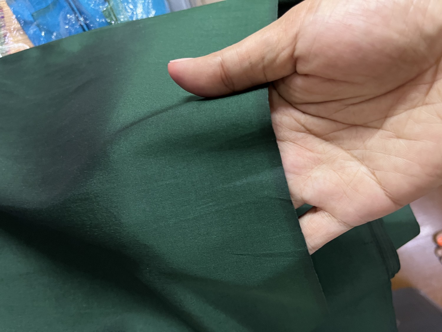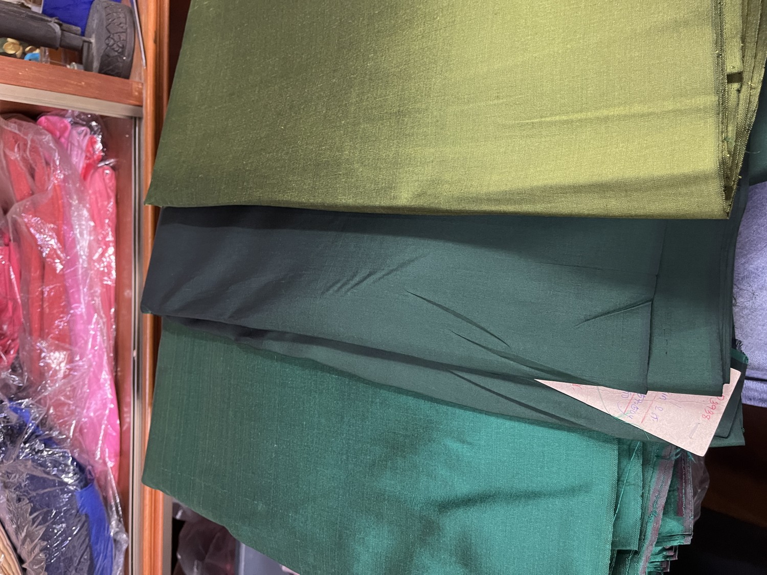 ผ้าไหมสีพื้น2ตกอเรียบทอมือ 1.สีเขียวสีเขียวหัวเป็ดแก่ 2. สีเขียวสด 3. สีเขียวไพรเน่า