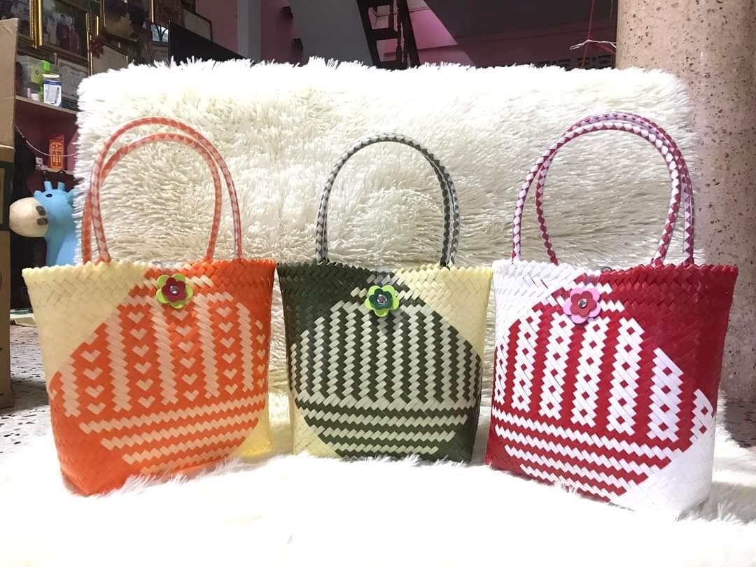 กรเป๋าสานจากเส้นพลาสติก