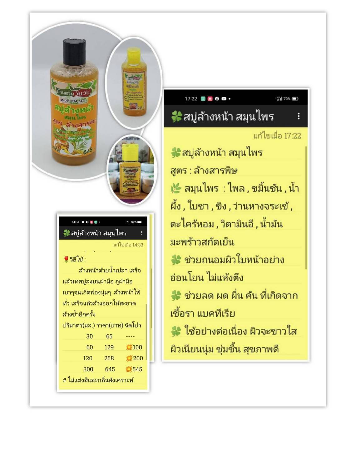 สบู่ล้างหน้าสมุนไพร ไพล ขิง ขมิ้น น้ำมันมะพร้าวสกัดเย็น ขนาด 300 มล. ราคา 645 บ. " ไม่แต่งสีและกลิ่นสังเคราะห์ "