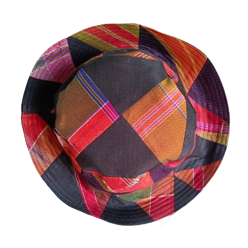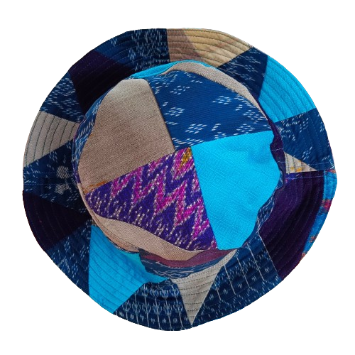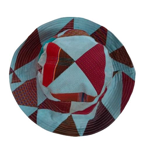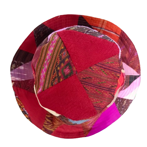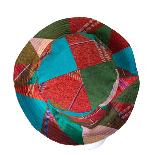 หมวกผ้าไหม ลายผ้าต่อ แปรรูปจากเศษผ้าไหม มาต่อเป็นลายสวยงาม แล้วมาตัดเป็นหมวก