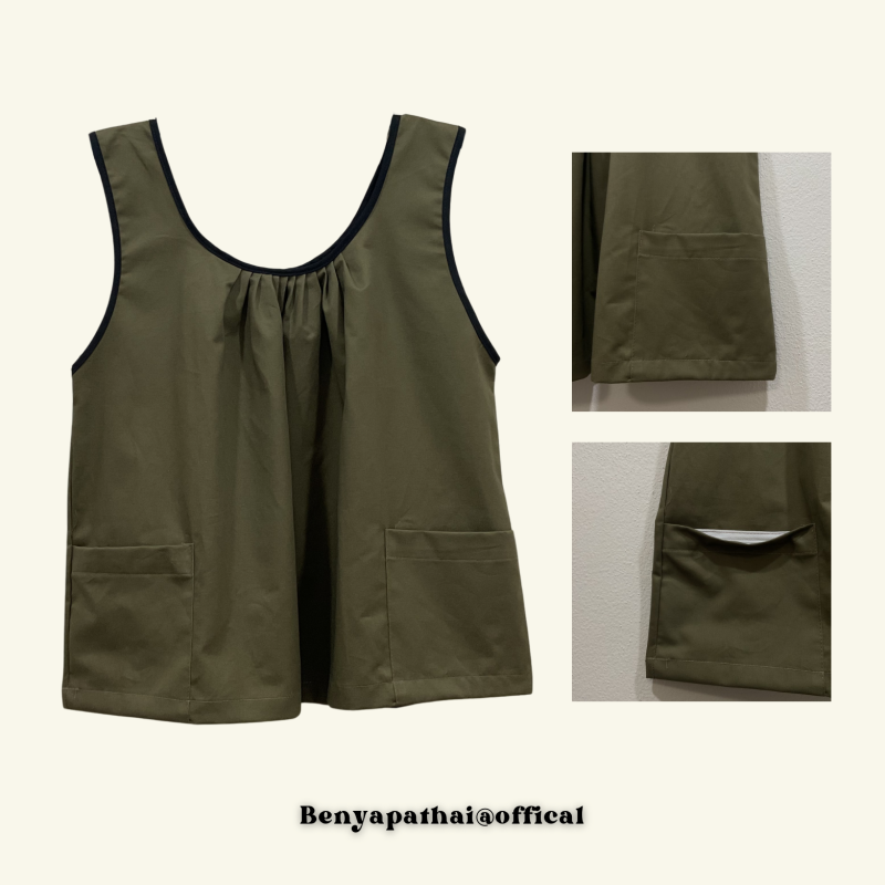 เสื้อคอกระเช้า เสื้อมะกะแหล่ง สีเขียวขี้ม้า