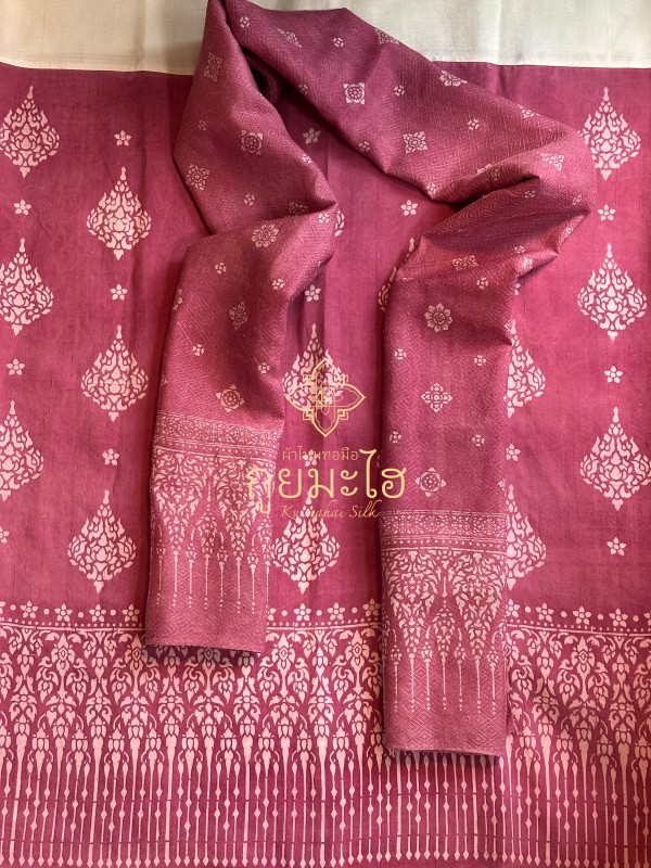 เซ็ตครั่งผ้าไหมแท้ที่ผ่านการย้อมจากสีธรรมชาติแท้ๆ 100% มากกว่าสิบครั้ง จนสีสรรเป็นที่น่าพอใจ จึงล็อคสีและล้างสีส่วนต่างออกจนหมดจด แรงบันดาลใจการทำลายผ้า เป็นลวยลายไทยๆ ที่นุ่งแล้วต้องมีคนเหลียวมองอย่างแน่นอน และหากสวมใส่ก็จะเกิดมงคลแก่ชีวิต ลายไทยมงคลผนังโบสถ์ สีแจ่มลายชัดลายครบองค์ประกอบ คือ ท้องผ้าลายประจำยาม ลูกขนาบ และกรวยเชิง ลายคมชัดละเอียดงดงามสะอาดตา สวมใส่แล้วเด่นไม่เหมือนใคร ทางเพจเราทำผืนต่อผืน กั้นสีด้วยธัญญพืชและลงด้วยสีธรรมชาติไม่ทำลายระบบนิเวศน์และทำมือทุกขั้นตอน