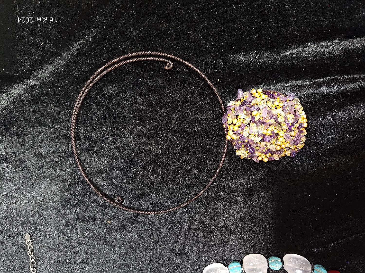 สร้อยคอโช๊คหินอเมทิสผสมมุก
