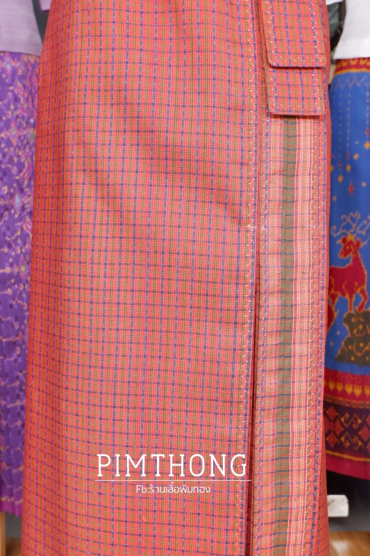 ผ้าถุงไหมแท้ทอมือ ลายสาคูหรือหลังเต่า 1 ในลายอัตลักษณ์ของจังหวัดสุรินทร์ ตัดทรงหน้านางข้างทวิส มีชายพกพับ เย็บแต่งลายเรียบร้อยสวยงาม
