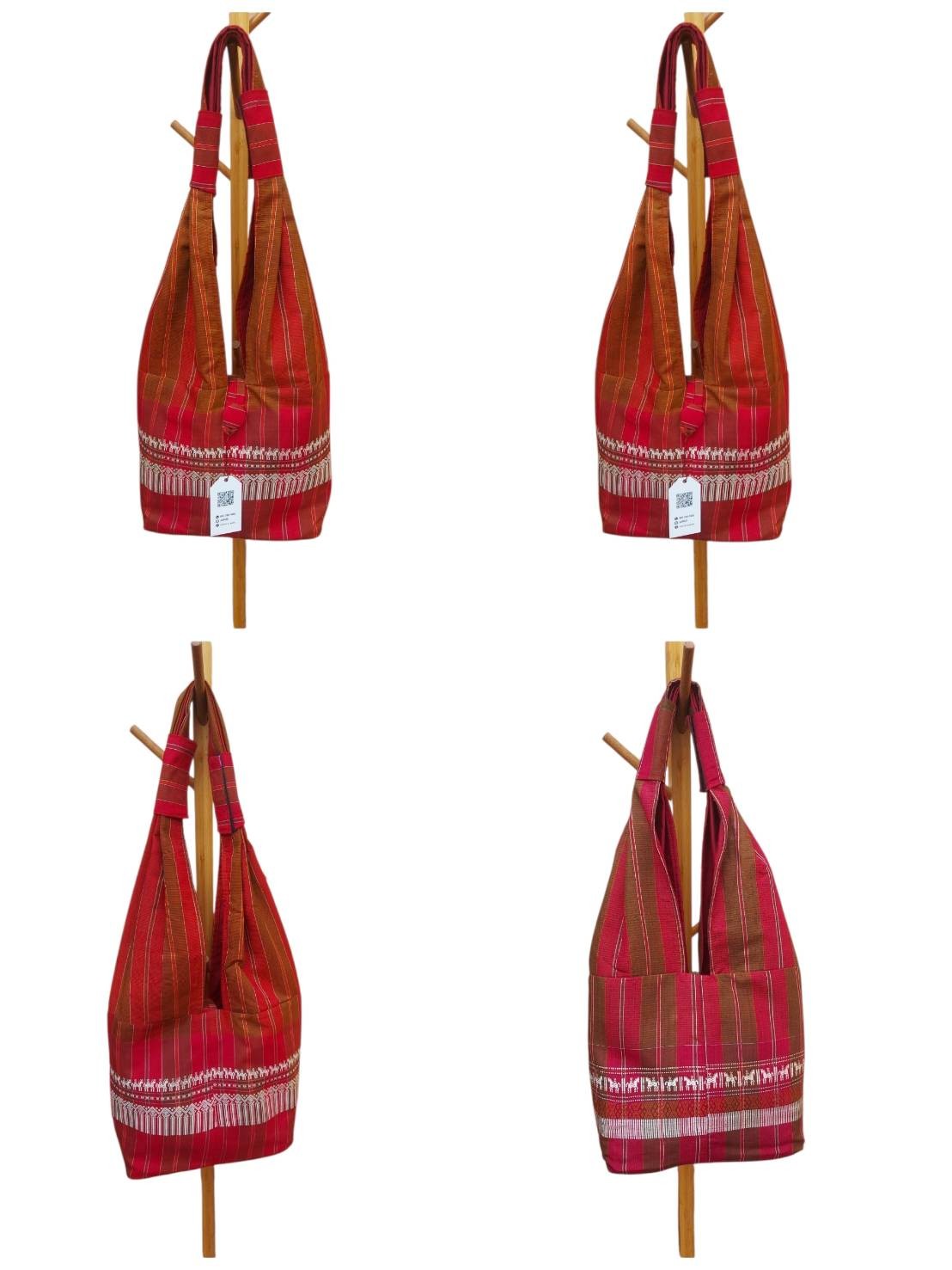 ย่ามผ้าไหมลายขิดโบราณ ผ้าไหมลายขาวม้ายกขิดเก่าเก็บนำมาตัดเย็บเป็นย่ามทรงทันสมัยดีไซน์เก๋ สนใจทัก0817097453