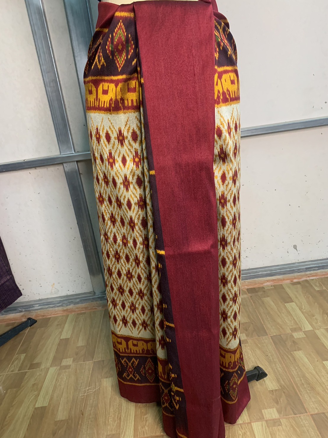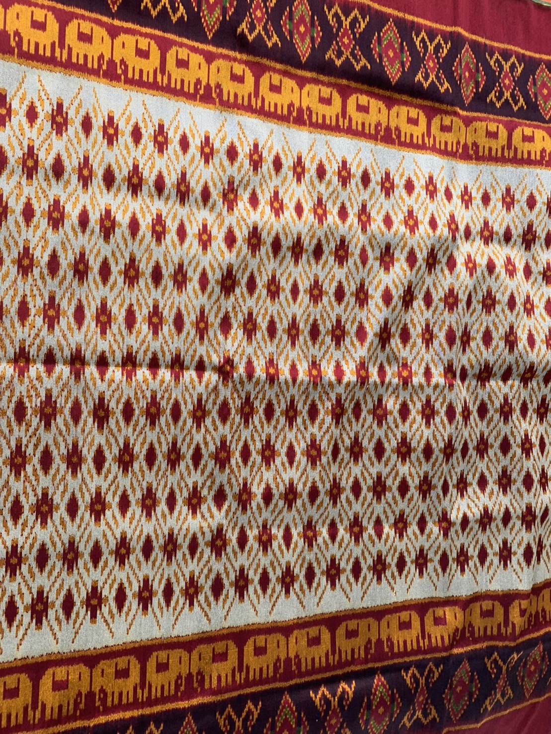ไหมสุรินทร์ทอมือ3 ตะกอทอหนาลายริ้วงาช้างสีสวยราคาถูกมีหน้านาง