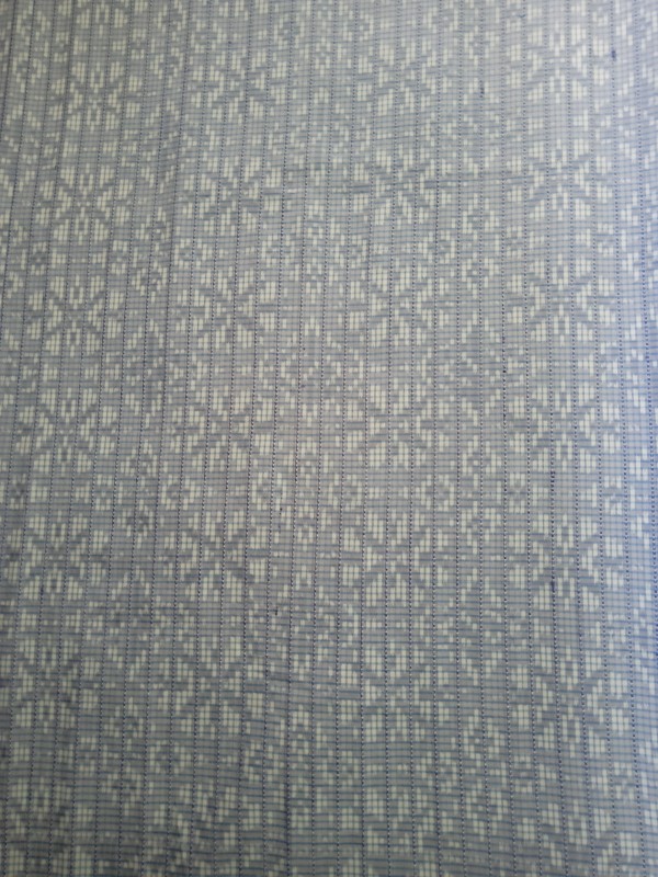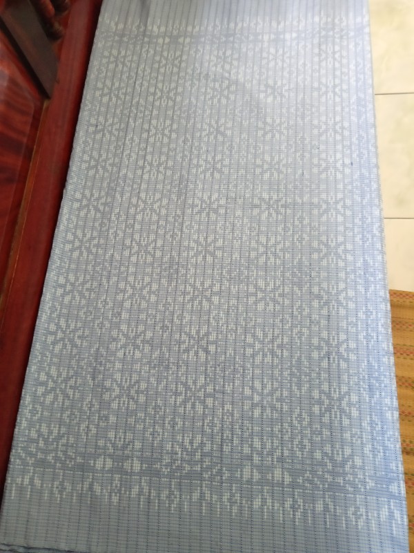 เป็นผ้าไหมลายดอกนรักราชกัญญา ทอยกขิดไข่ปลาแซมหางกระรอก โทนสีพาสเทล ย้อมคราม เนื้อผ้าสวยพลิ้ว สวมใส่สบาย