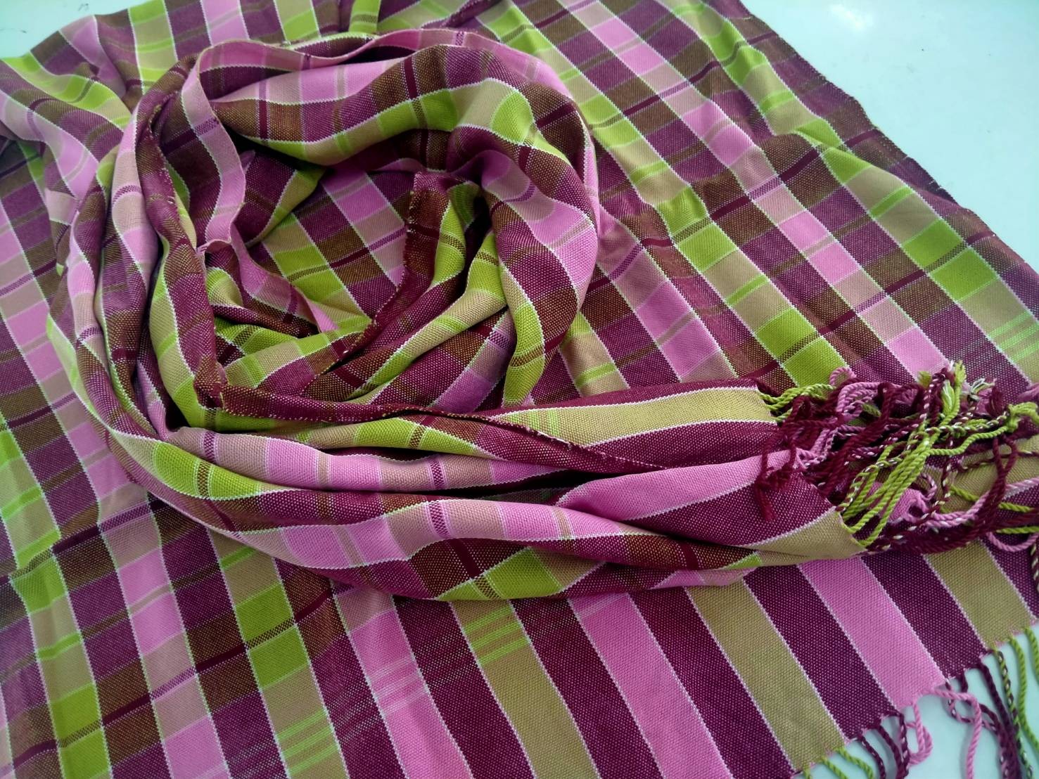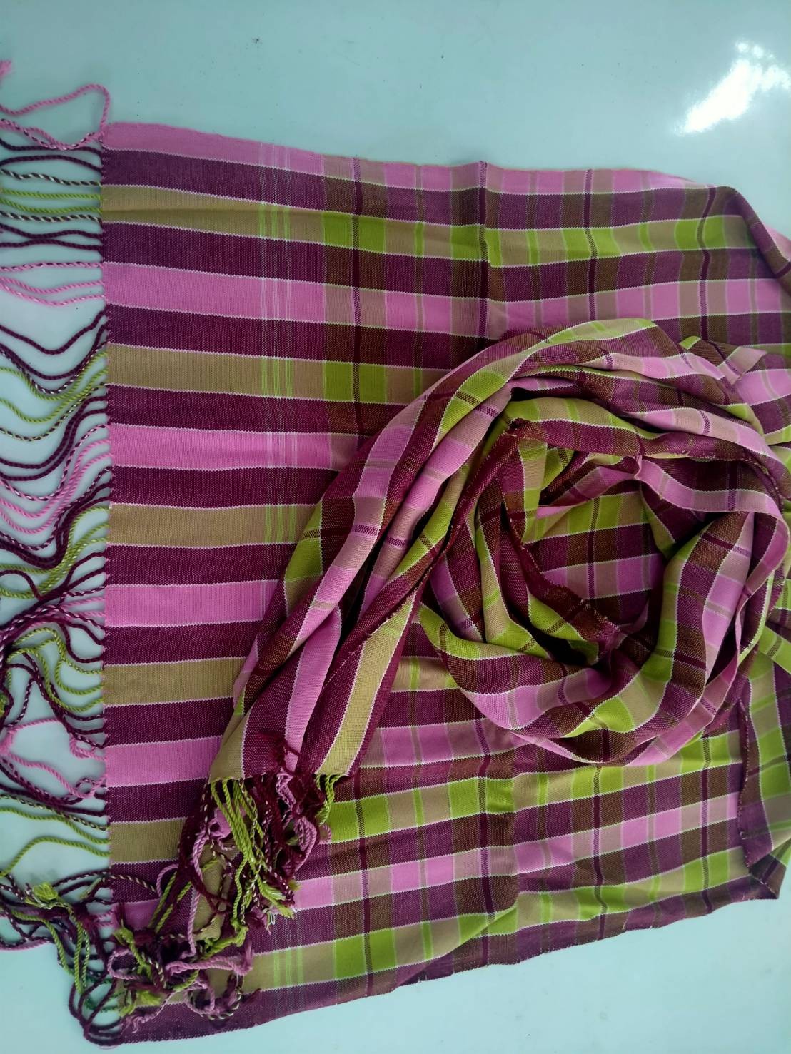 ผ้าพันคอทอมือ จากเส้นด้ายเรยอน มีชายครุย