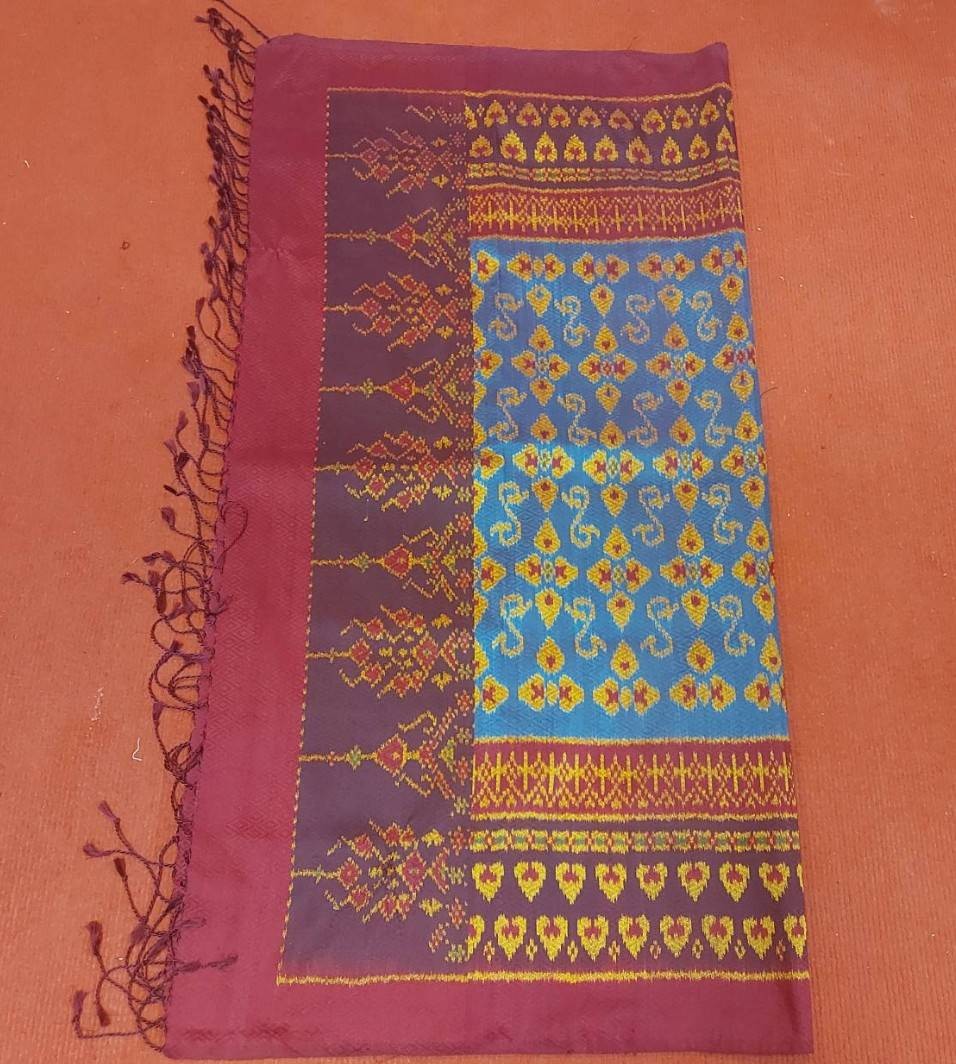 ผ้่าไหมลายดอกรักราชกัญญา 5 ตะกอมีหน้านางชายครุย ขนาด 100X200CM.