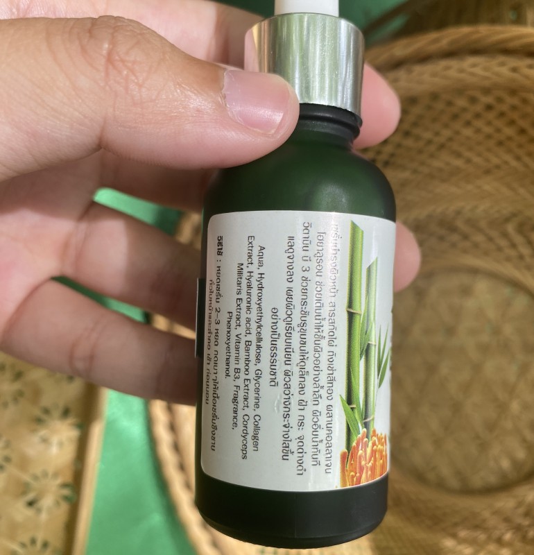 เซรั่มบำรุงผิวหน้า สารสกัดไผ่ ถั่งเช่าสีทอง ผสานคอลลาเจน ไฮยารูลอน ช่วยเติมน้ำให้ชั้นผิวอย่างล้ำลึก ผิวอิ่มน้ำทันที วิตามินบี 3 ช่วยกระชับรูขุมขนให้ดูเล็กลง ฝ้า กระ จุดด่างดำแลดูจางลง เผยผิวดูเรียบเนียน ผิวสว่างกระจ่างใสขึ้น อย่างเป็นธรรมชาติ