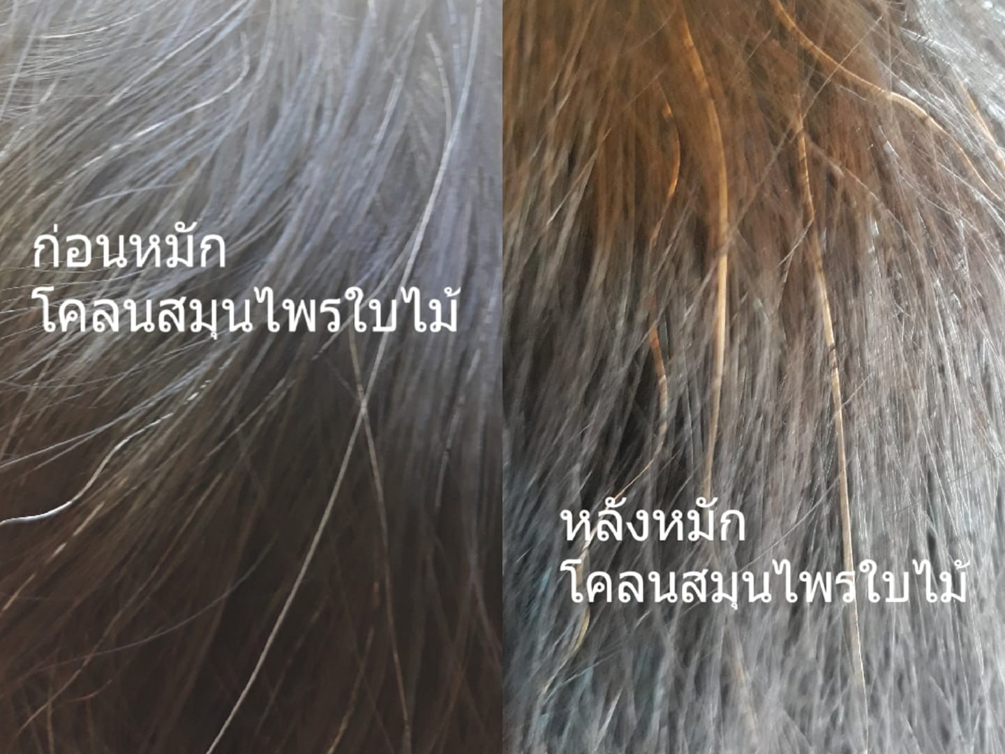 **ยิ่งหมักสีของสมุนไพรยิ่งติดผมขาวชัดขึ้น