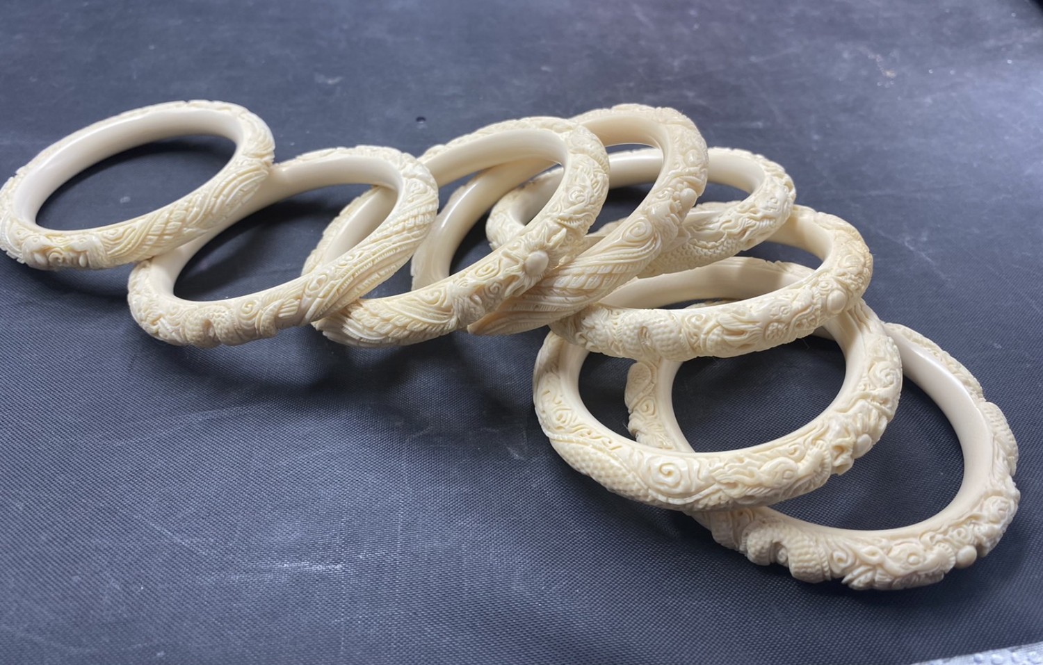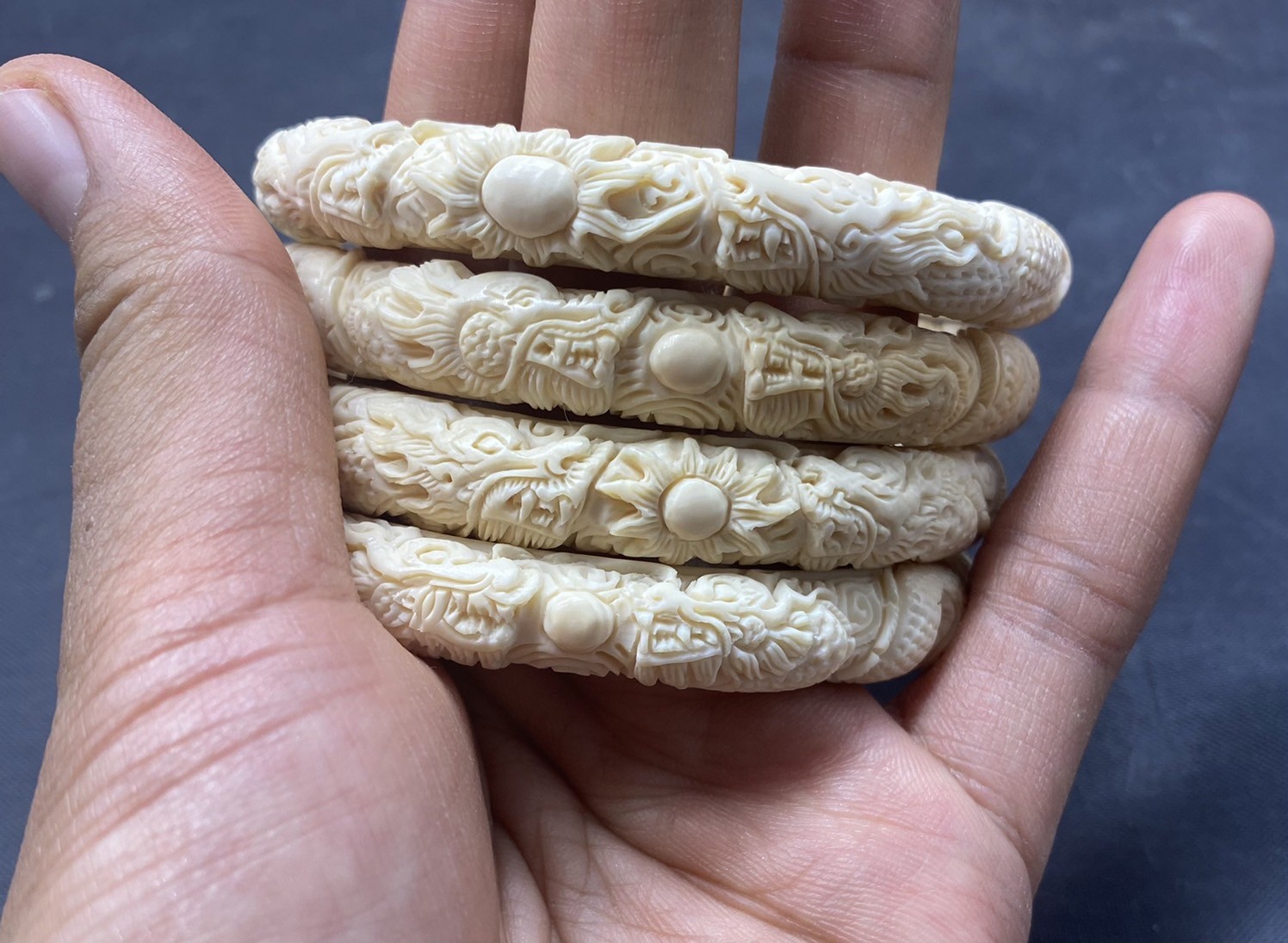 กำไลงาแกะสลักหงษ์มังกร 10 มิล