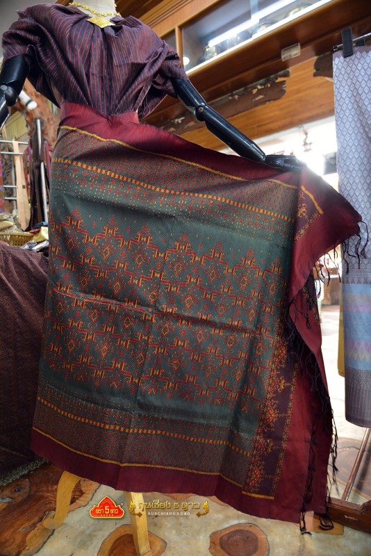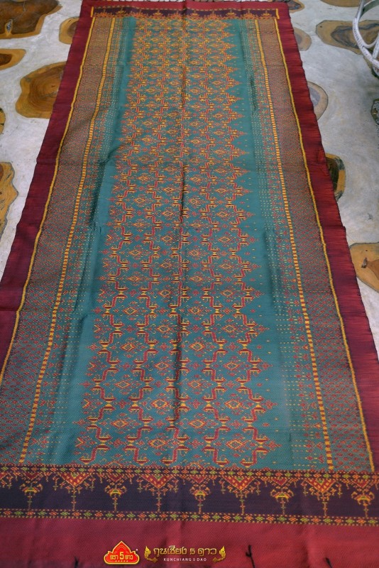ผ้าไหมมัดหมี่ลายนาคเกี้ยวโคมระย้า 10ตะกอ