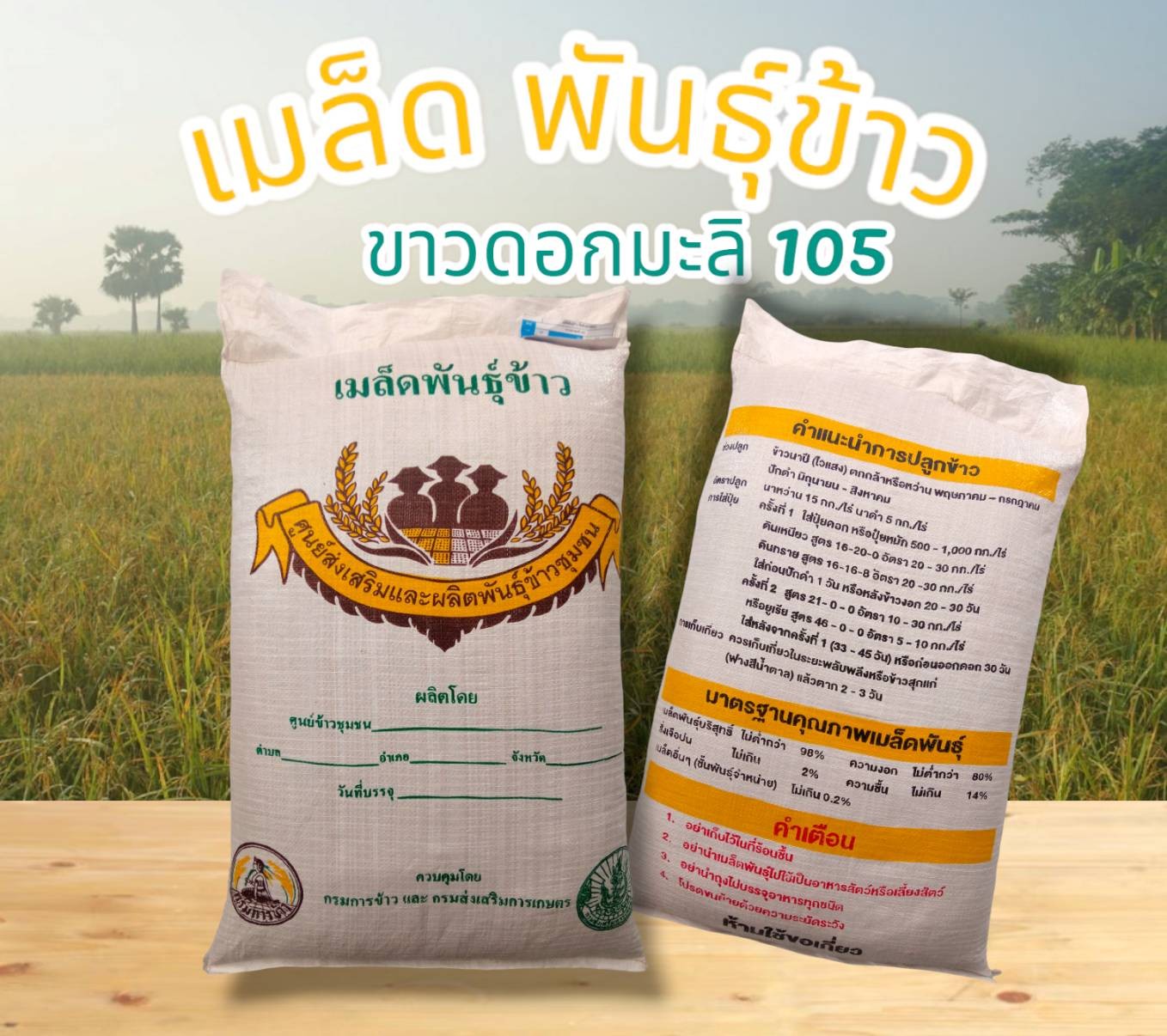 เมล็ดพันธุ์ข้าว ขาวดอกมะลิ 105