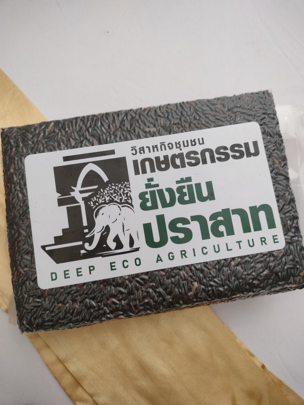 ข้าวสารขนาดบรรจุ 1 กิโลกรัมบรรจุสูญญากาศ วิสาหกิจชุมชนเกษตรกรไทยใจดีสุรินทร์ ผู้ผลิตข้าวอินทรีย์ ตรา ทรงคุณ