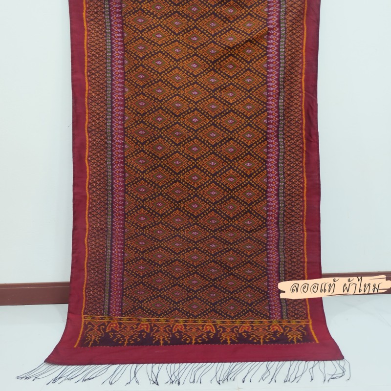 ผ้าไหมแท้ มัดหมี่ มีชายครุย ลายโฮลเปราะห์