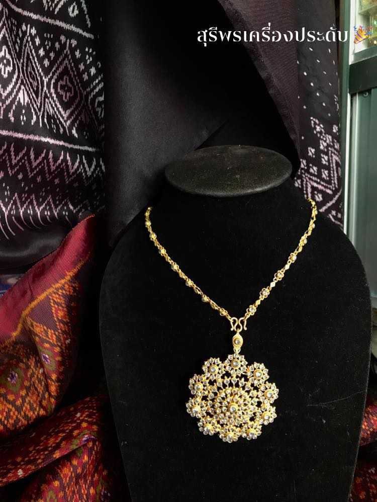 สร้อยคอดอกจอกพร้อมจี้ฝังเพชรน้ำบุศ