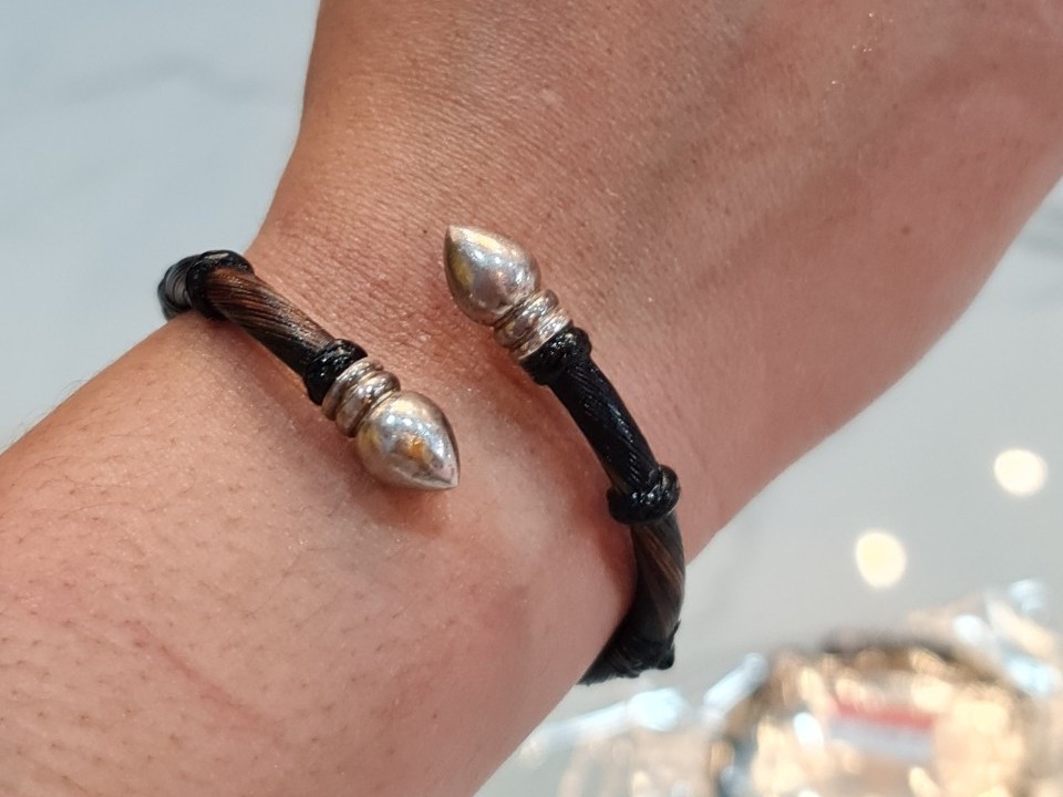 กำไลหัวเงินทรงบัว ตัวกำไลถักด้วยขนหางช้างแท้