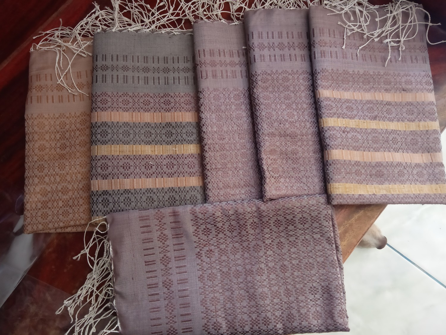 เป็นผ้าพันคอยกดอกย้อมสีธรรมชาติ