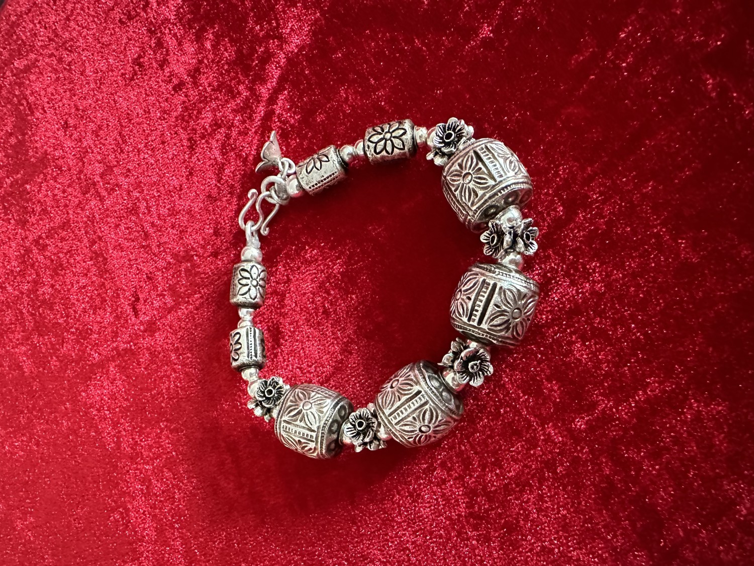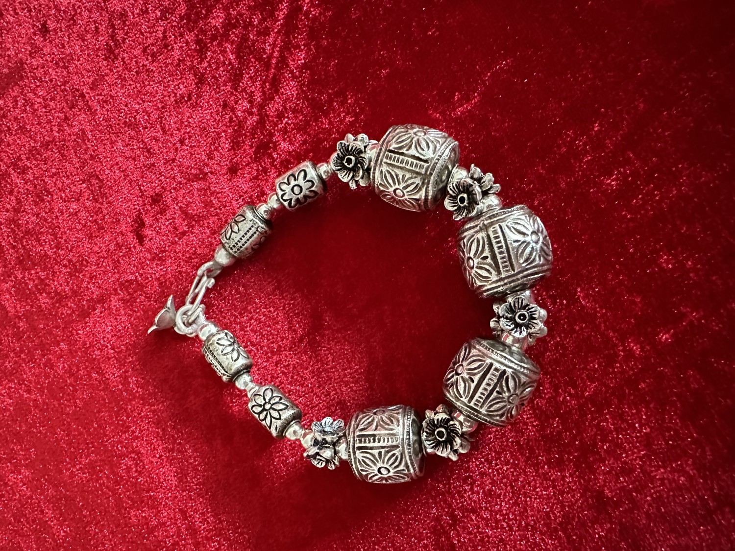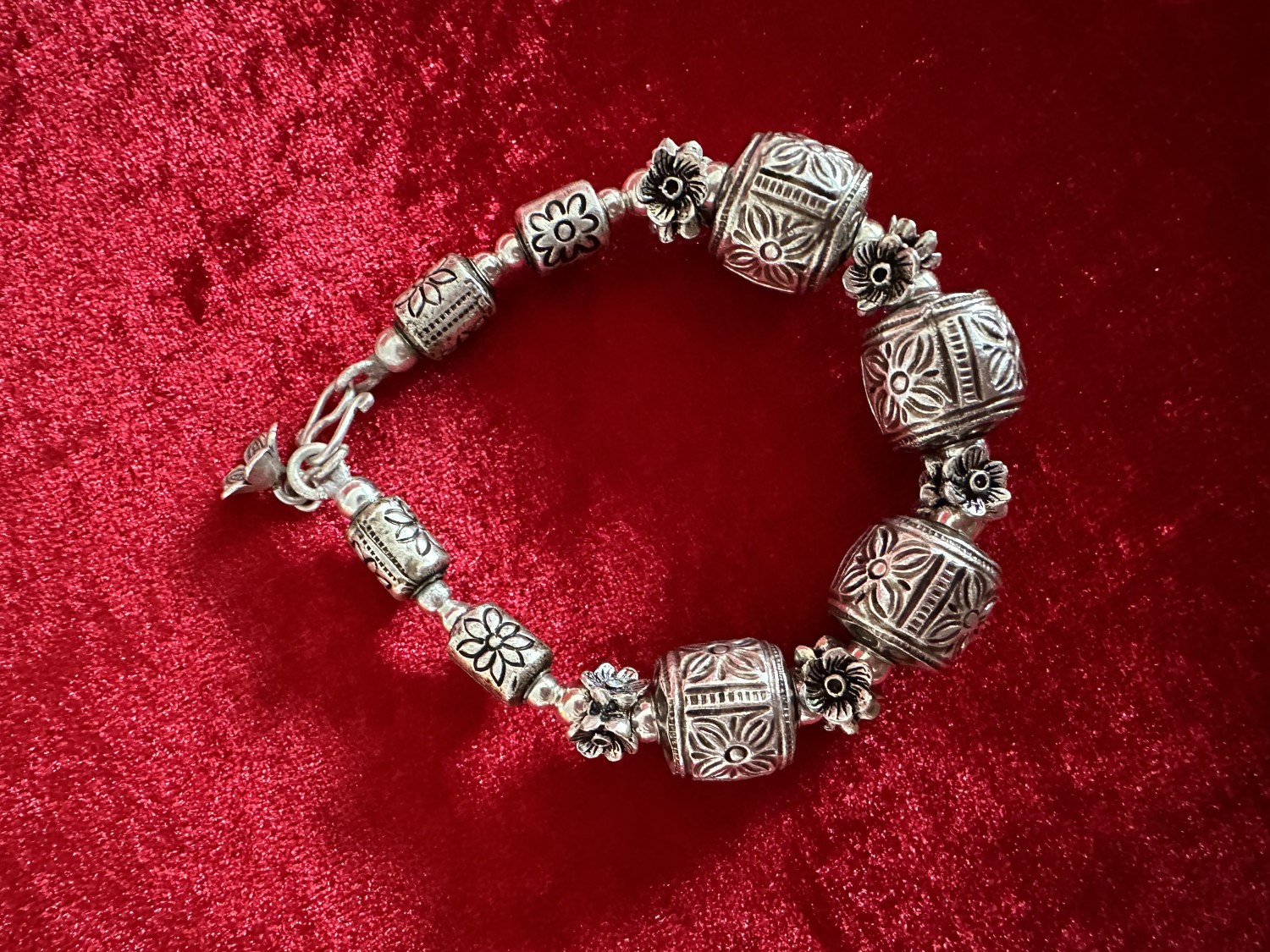 สร้อยข้อมือประเกือมถุงเงินเเกะลายพิกุล สวมใส่ได้ทุกโอกาส ความยาว 7 นิ้ว โซ่ปรับขนาดได้