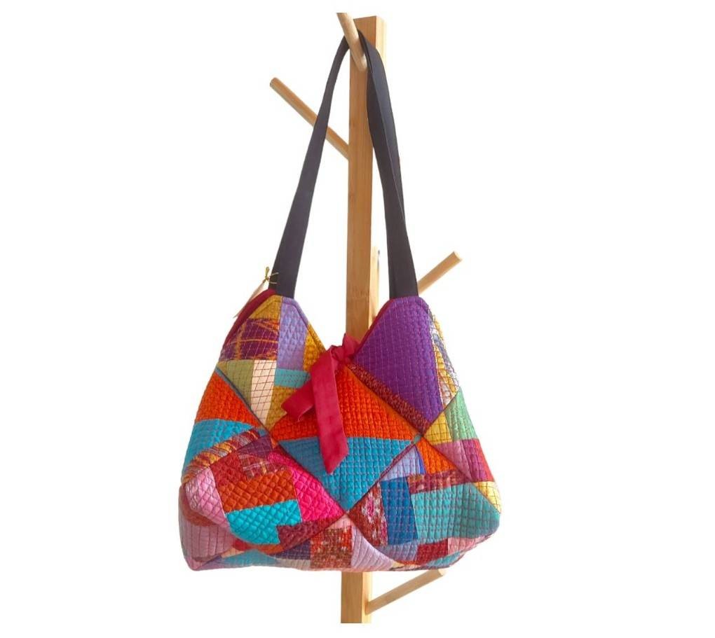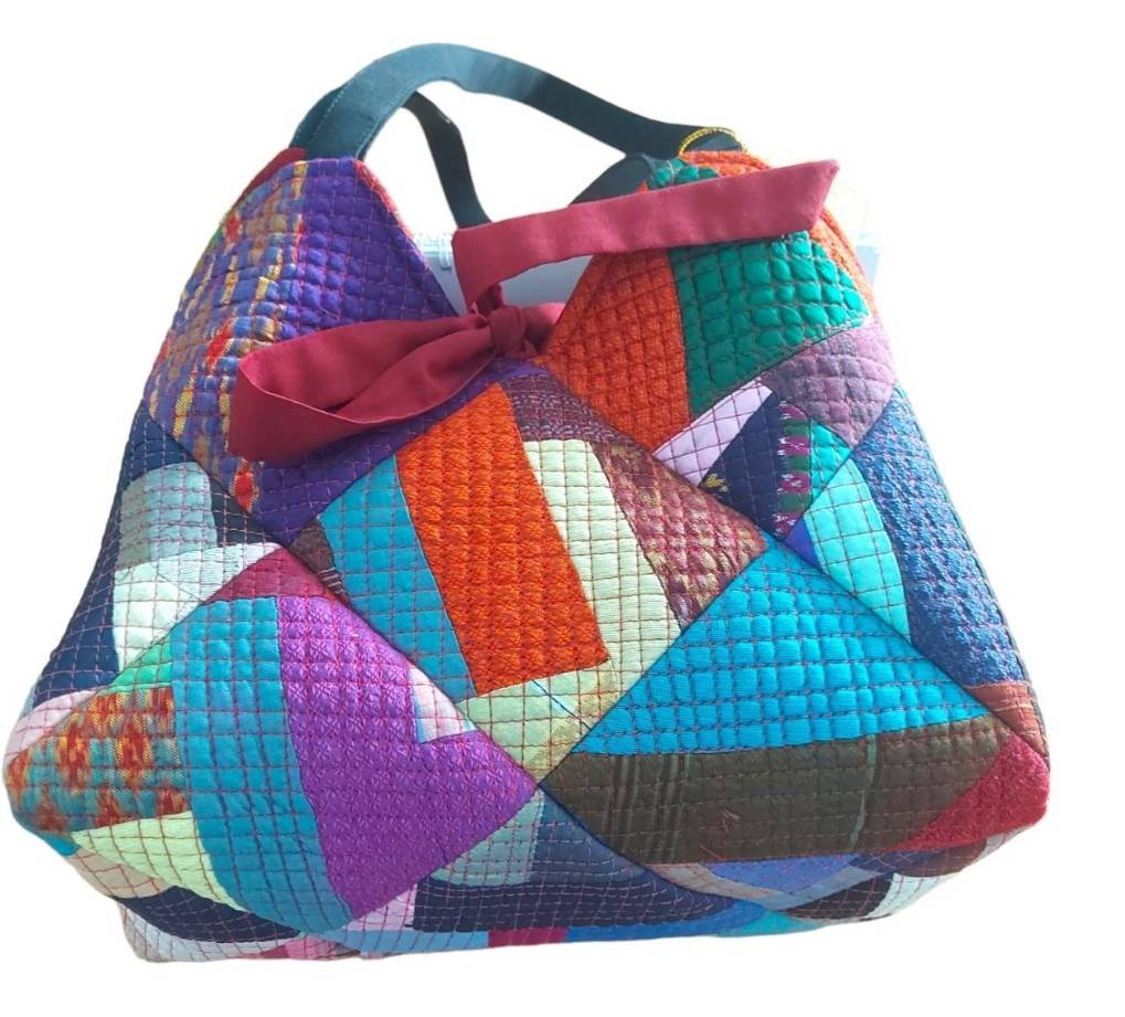 กระเป๋าผ้าไหมแท้ ต่อลายด้วยสีสันสดใส มีซิป มีซับตัดเย็บฝีมือประณีต