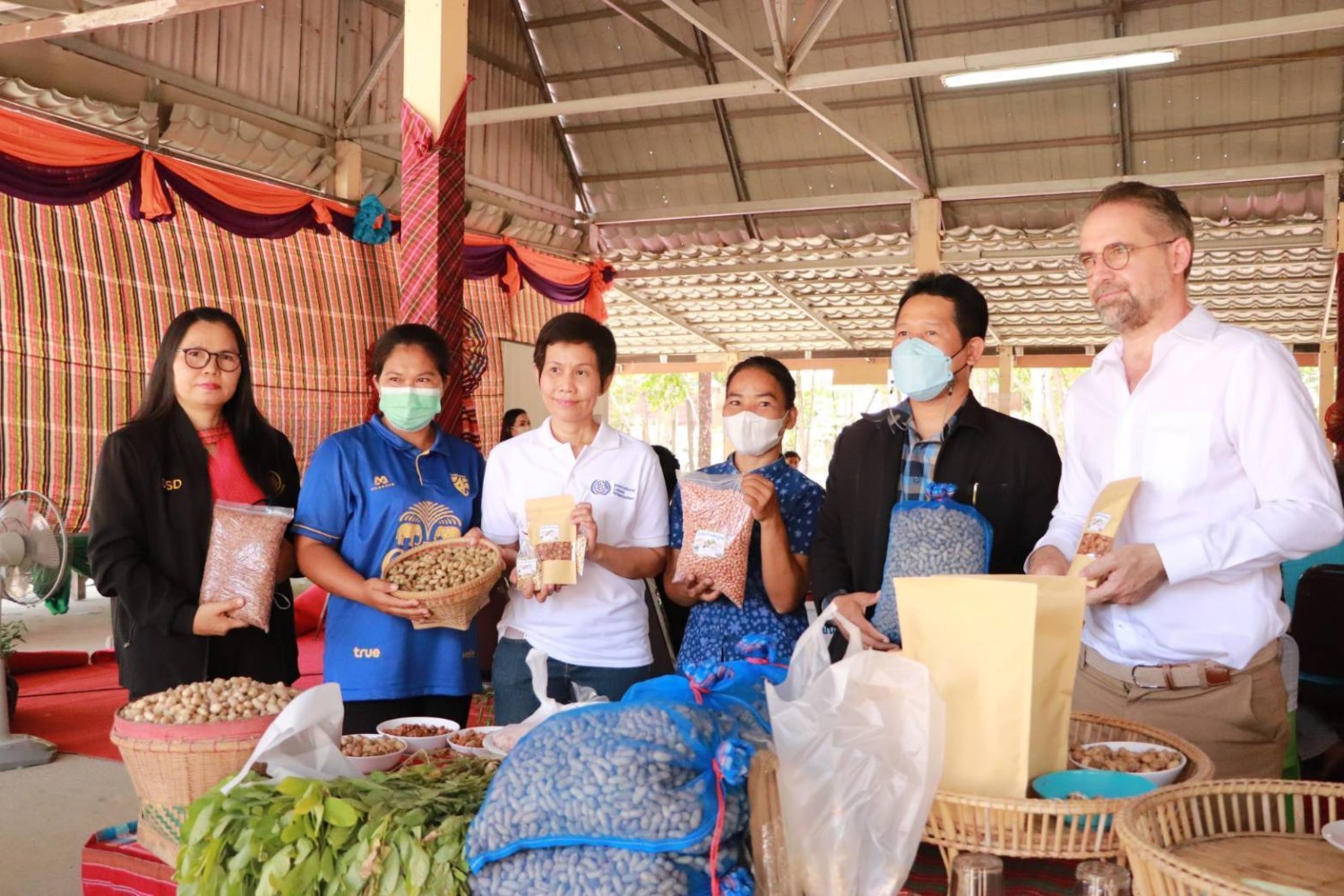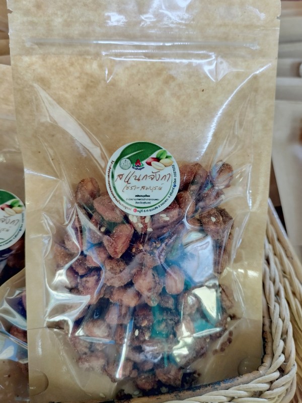 กลุ่มวิสาหกิจชุมชนเกษตรผสมผสานบ้านสมบูรณ์ ได้เมล็ดพันธ์ุพืชตระกูลถั่ว พันธุ์ถัวลิสงไทนาน 9 ซึ่งเหมาะกับสภาพดิน อากาศ ทางตำบลชุมแสง อำเภอจอมพระ ของเรา ทางกลุ่มมีการปลูกคนละ 2 ไร่ จำนวน 20 คน มีกระบวนการดูแลเอาใจใส่อย่างดีสม่ำเสมอ โดยใช้วิธีการปลูกปลอดสารพิษ เป็นถั่วอินทรีย์ ถั่วลิสงมีโปรตีนสูง ต้านอนุมูลอิสระ ช่วยเสริมสร้างการเจริญเติบโต ป้องกันการเกิดมะเร็ง ช่วยลดคอเลสเตอรอล ขายตามออเดอร์ที่ลูกค้าสั่ง และ ลูกค้าได้รับของ สด ใหม่ เสมอ