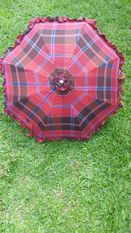 อัตลักษณ์ของผ้าสโหร่งพื้นถิ่นสุรินทร์ ออกแบบดีไซน์ให้ทันสมัย โดยนำมาประดิษฐ์ให้เป็นร่มกันแดด กันยูวี ที่ใช้ประโยชน์ได้จริง มีความสวยงาม ใช้ได้ทุกโอกาส เป็นของขวัญ ของฝาก ของที่ระลึกได้ ขนาด 18 นิ้ว มียูวี กันแดดได้เป็นอย่างดี