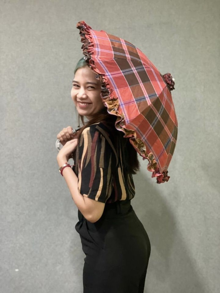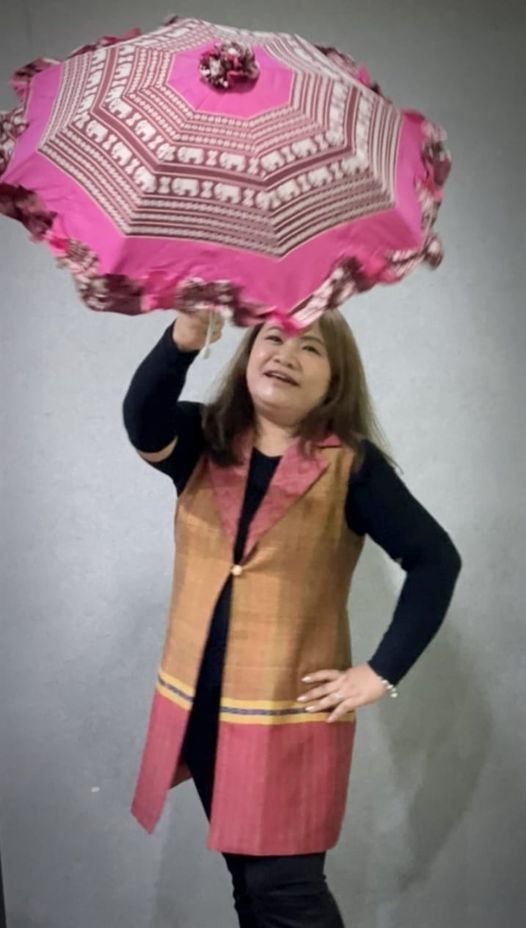 ร่มกันแดดขนาด 18 นิ้ว งานประดิษฐ์จากผ้า ต่อยอด พัฒนาให้มีความสวยงาม ใช้งานได้จริง กันแดดได้ดี กันยูวีได้ด้วย สวยงามมีเอกลักษณ์ ด้วยลายขิดช้าง โครงสร้างร่มมีความแข็งแรง