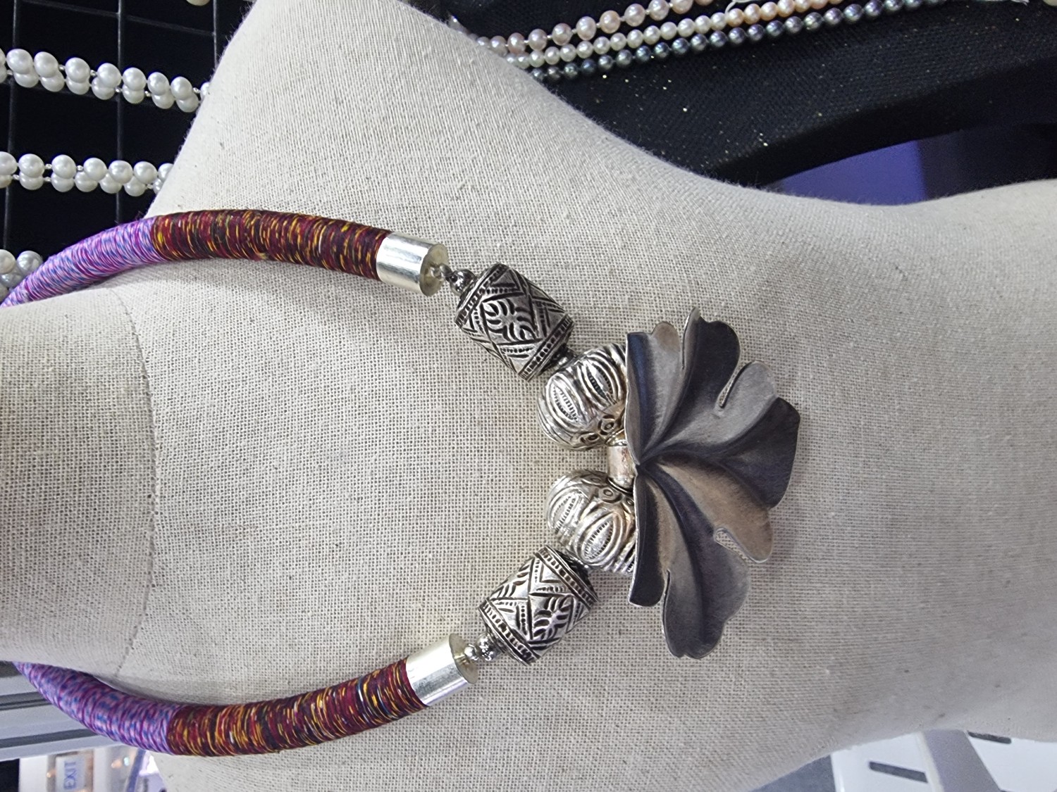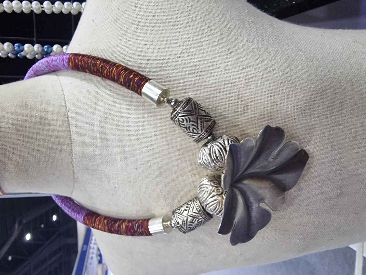 สร้อยไหมเม็ดเงิน ทำจากเส้นไหมตกแต่งด้วยเงิน ให้มีความทันสมัย