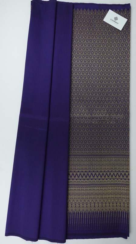 (ผ้าชุด)ไหมยกดอกสุรินทร์ ยกดดิ้น ขนาด 1x4เมตร (ลาย 2เมตร+สีพื้น 2เมตร) พื้นสีม่วงเข้ม รหัส N10-66-0822678 รหัสสินค้า SKU-31823