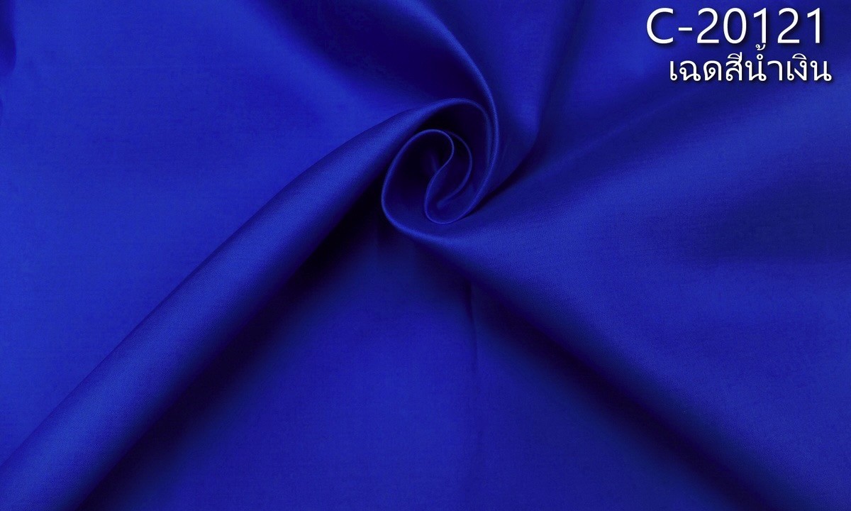 ผ้าไหมสีพื้น เนื้อเรียบ ไหมแท้ 2เส้น เฉดสีน้ำเงิน ตัดขายเป็นหลา รหัส C-20121 รหัสสินค้า SKU-20853