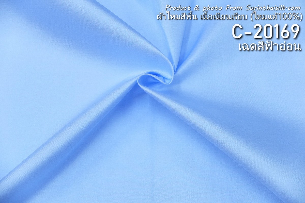 ผ้าไหมสีพื้น เนื้อเรียบ ไหมแท้ 2เส้น เฉดสีฟ้าอ่อน ตัดขายเป็นหลา รหัส C-20169 รหัสสินค้า SKU-31668