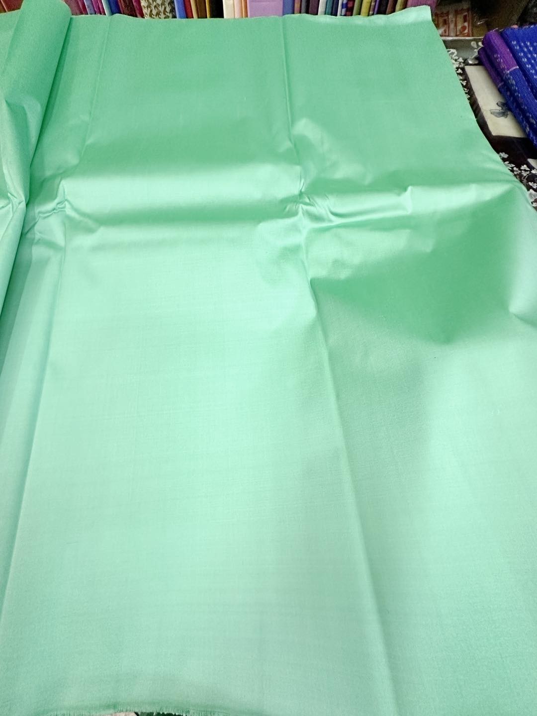 ผ้าไหมสีพื้น เนื้อเรียบ ไหมแท้ 2เส้น สีเขียวมิ้นต์อ่อน ตัดขายเป็นหลา รหัส C-30139